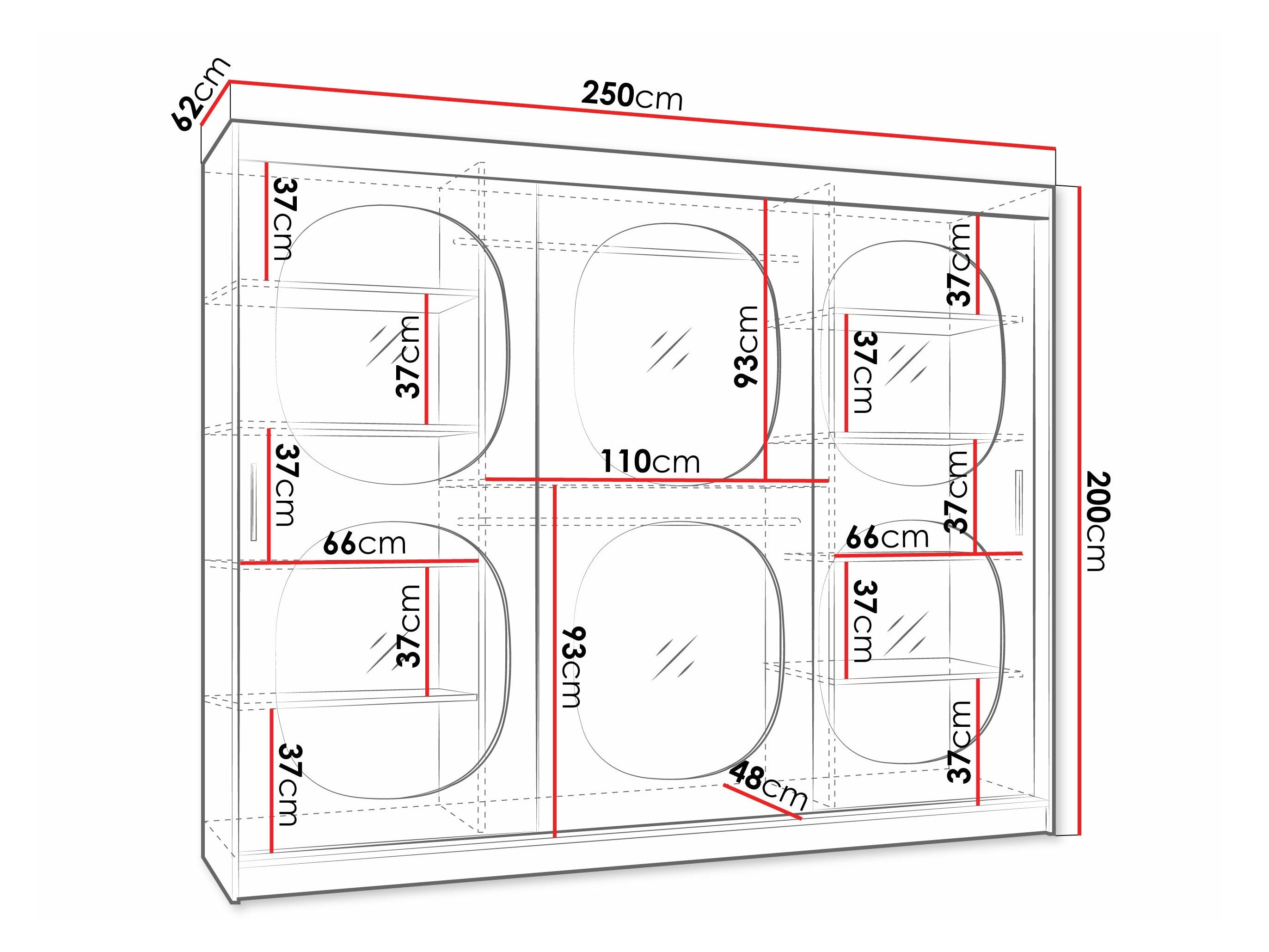 - Ancho: 250 cm