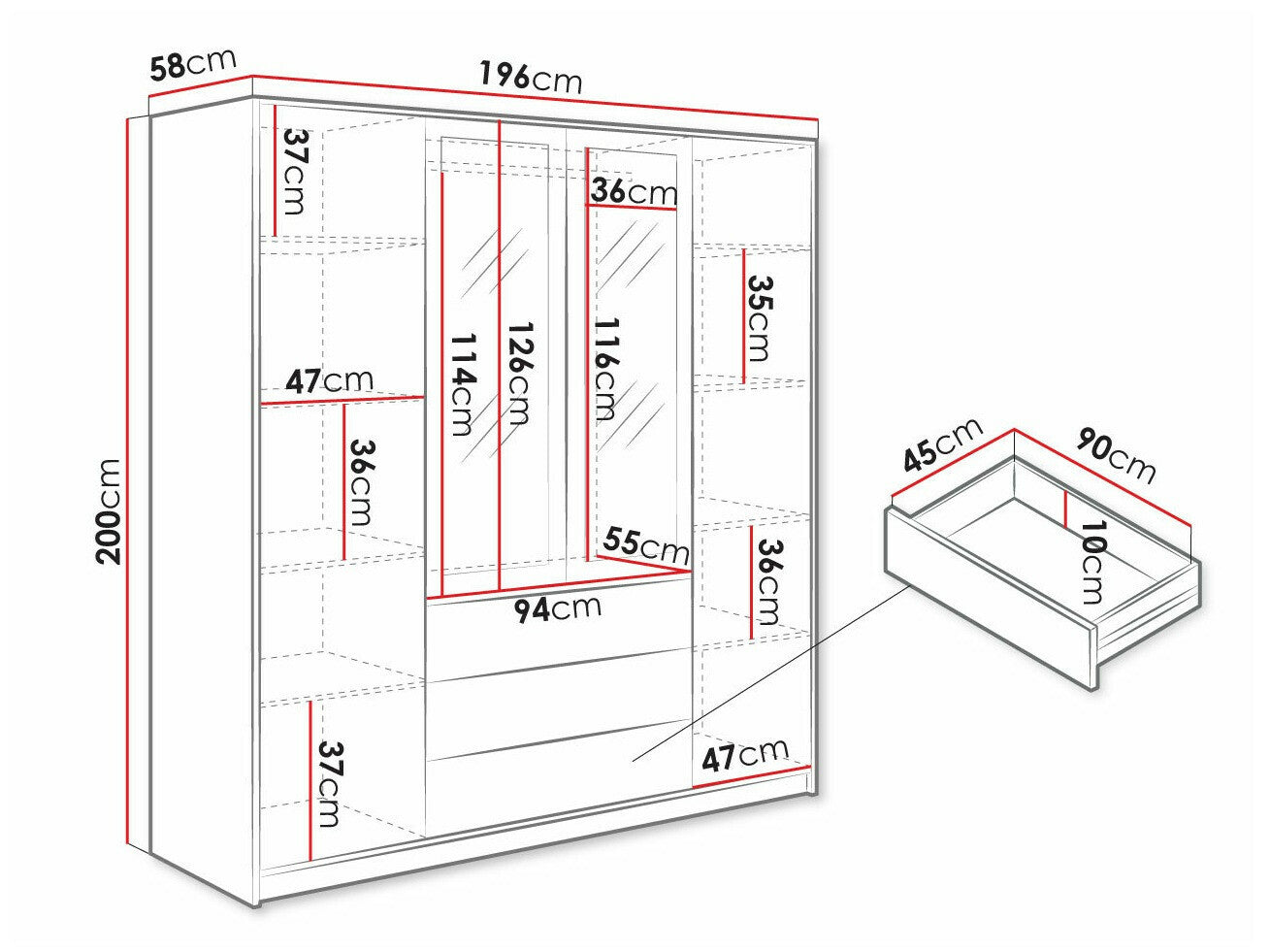 - Ancho: 196 cm