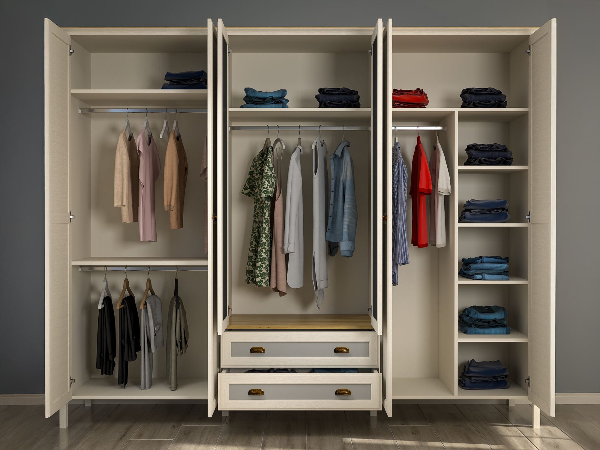 - Puertas de armario: Con bisagras