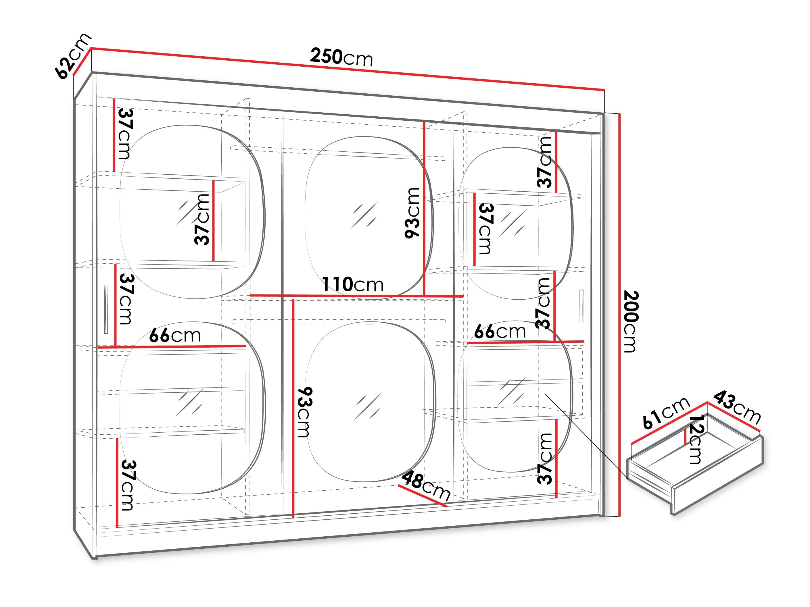 - Ancho: 250 cm