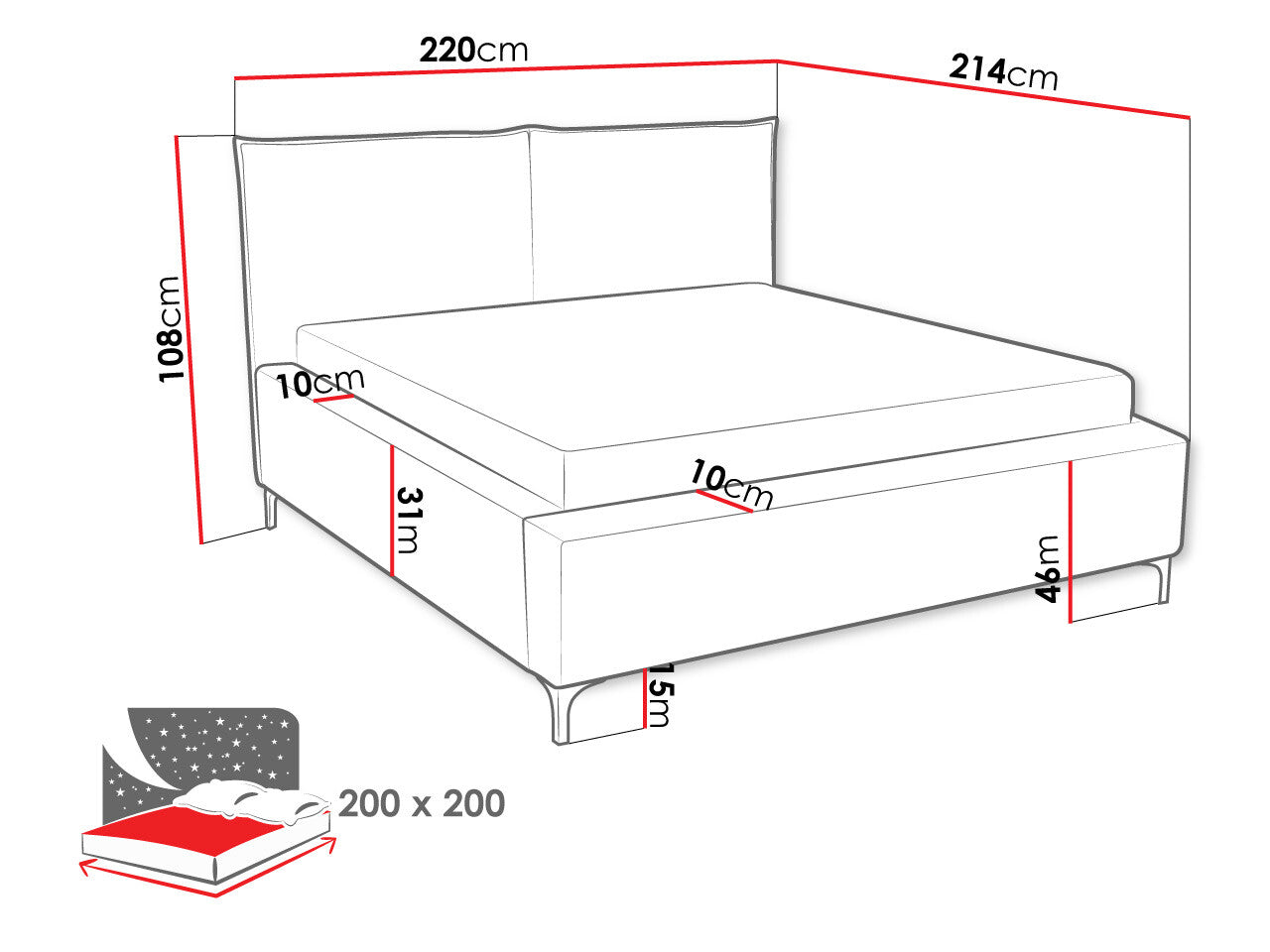 108 x 220 x 1.5 cm
