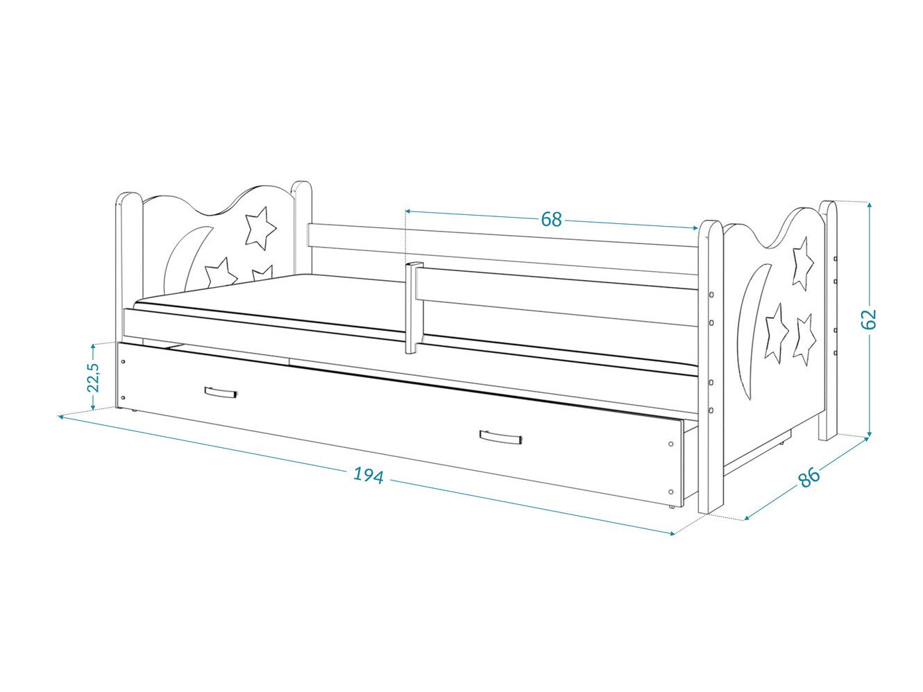 - Tamaño del colchón: 80 x 190 cm