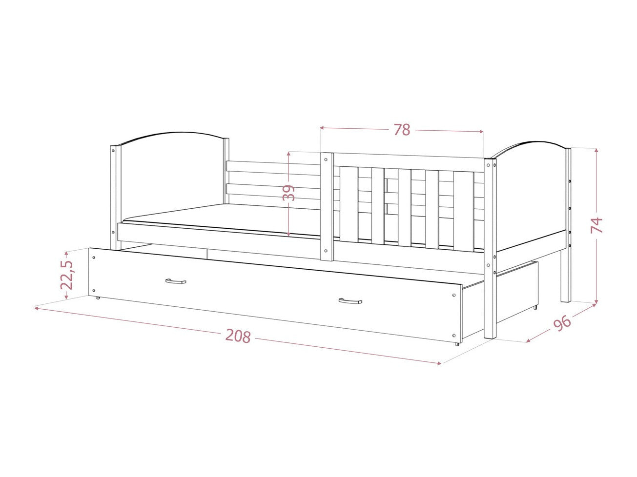 - Tamaño del colchón: 90 x 200 cm