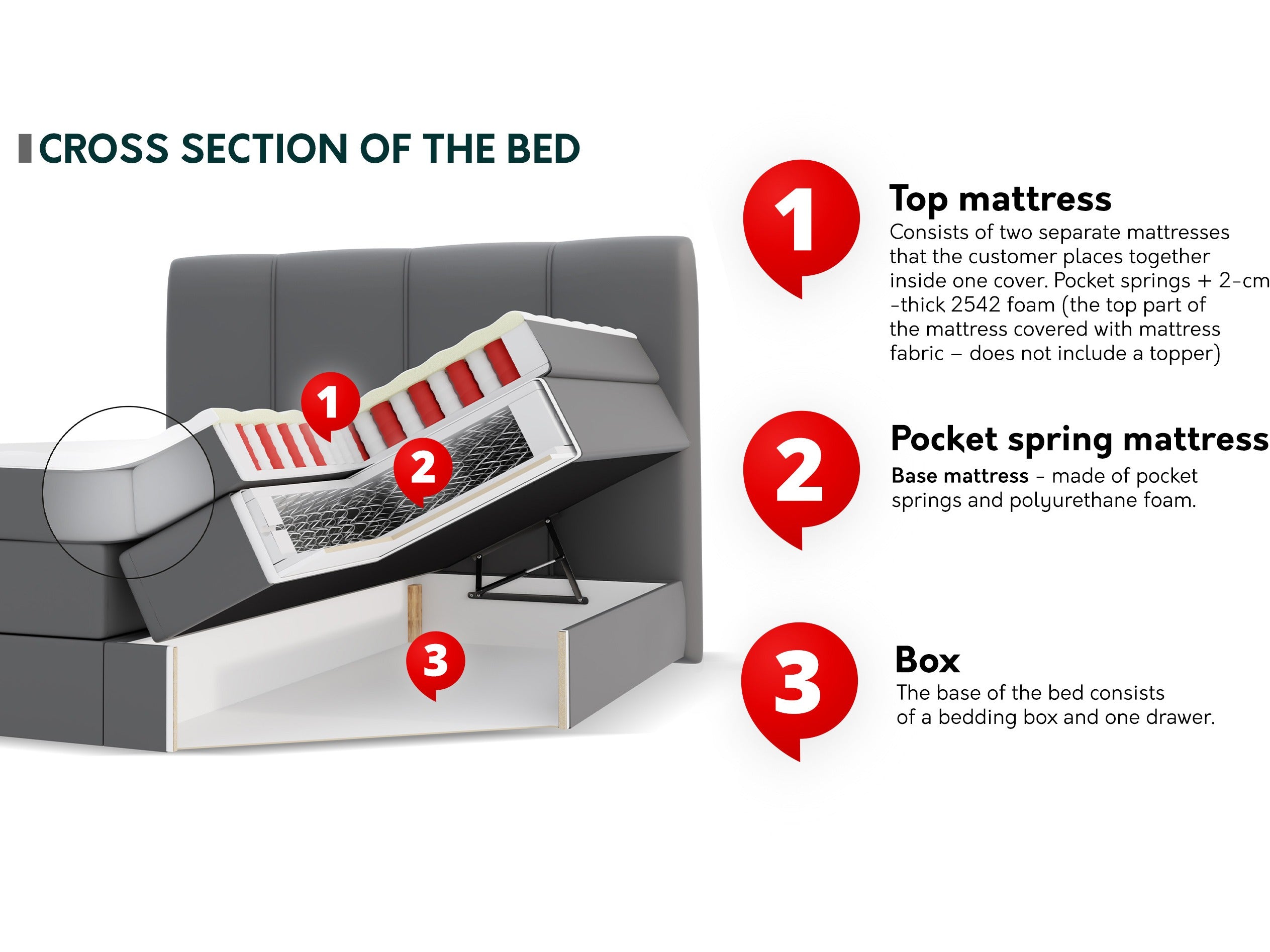 - Tipo de colchón: Con muelle (Pocket)