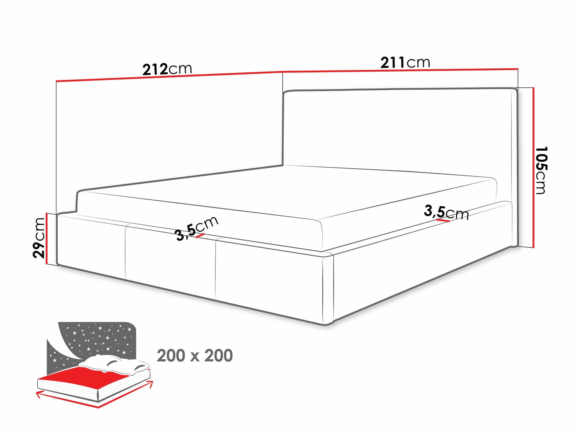 - Tamaño del colchón: 200 x 200 cm