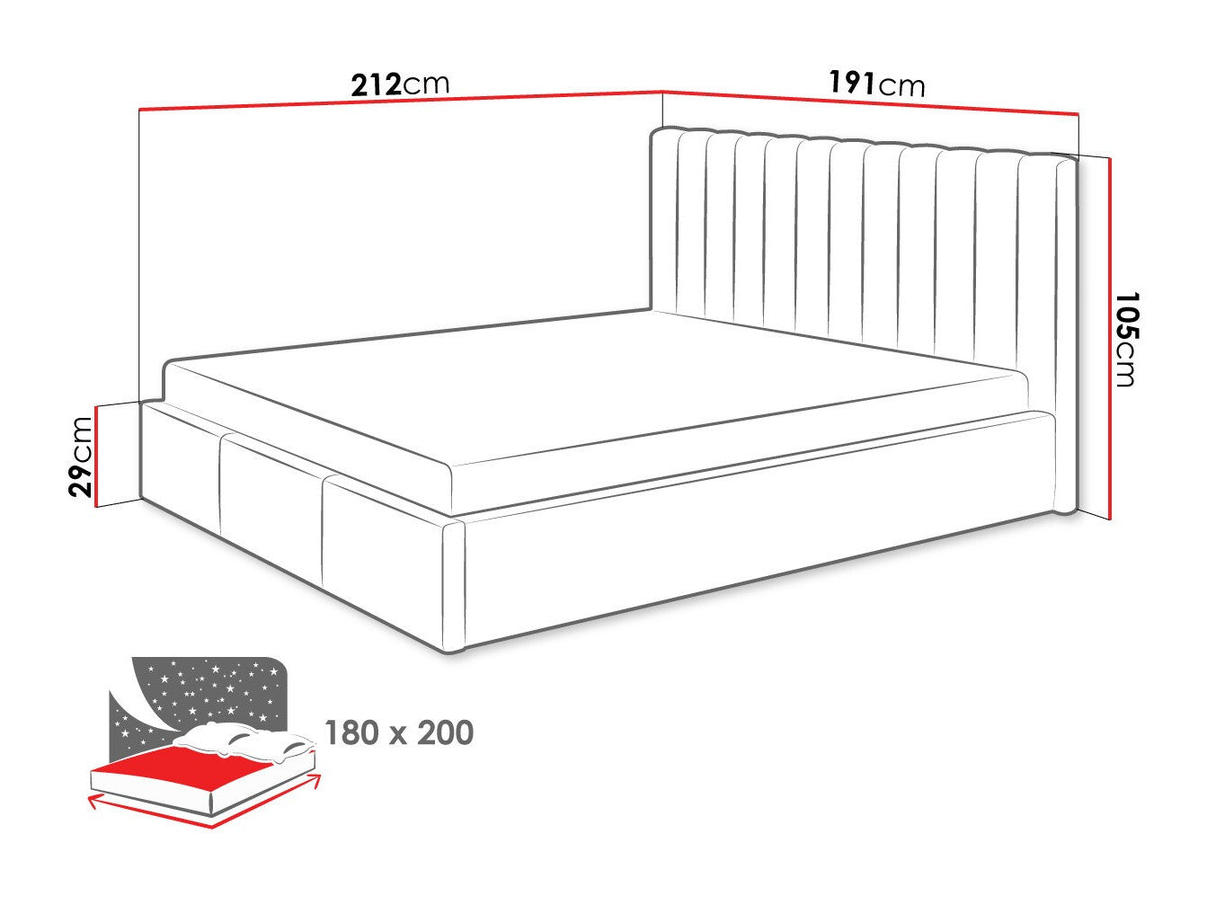 - Tamaño del colchón: 180 x 200 cm