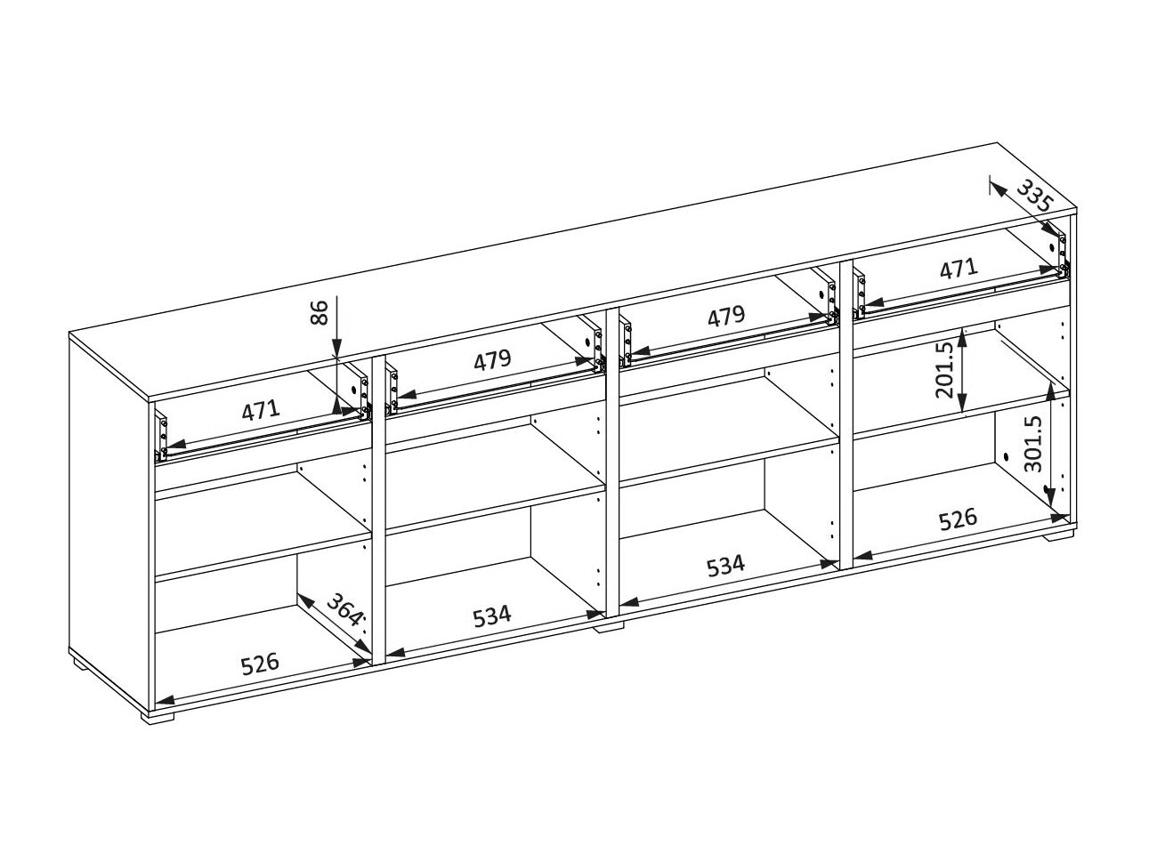 - Número de cajones: 4 uds.