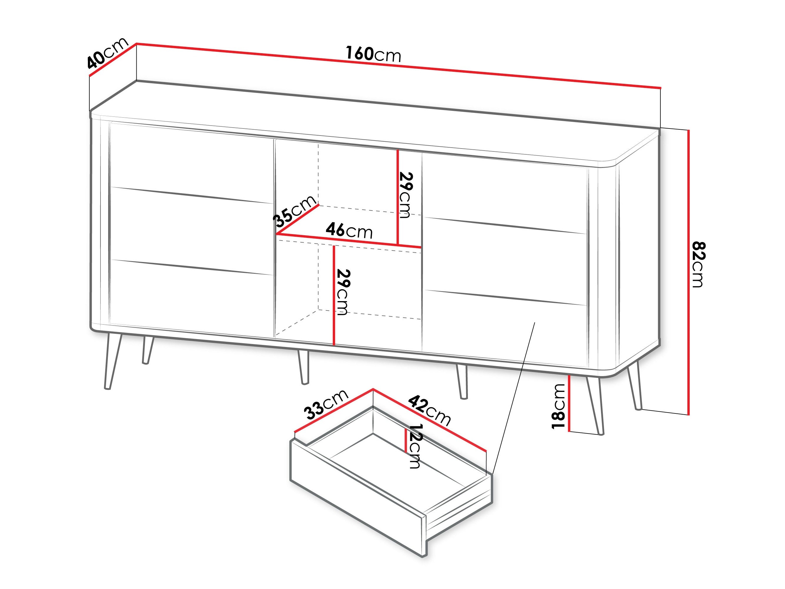 - Tipo de cómoda: Con cajones y puertas