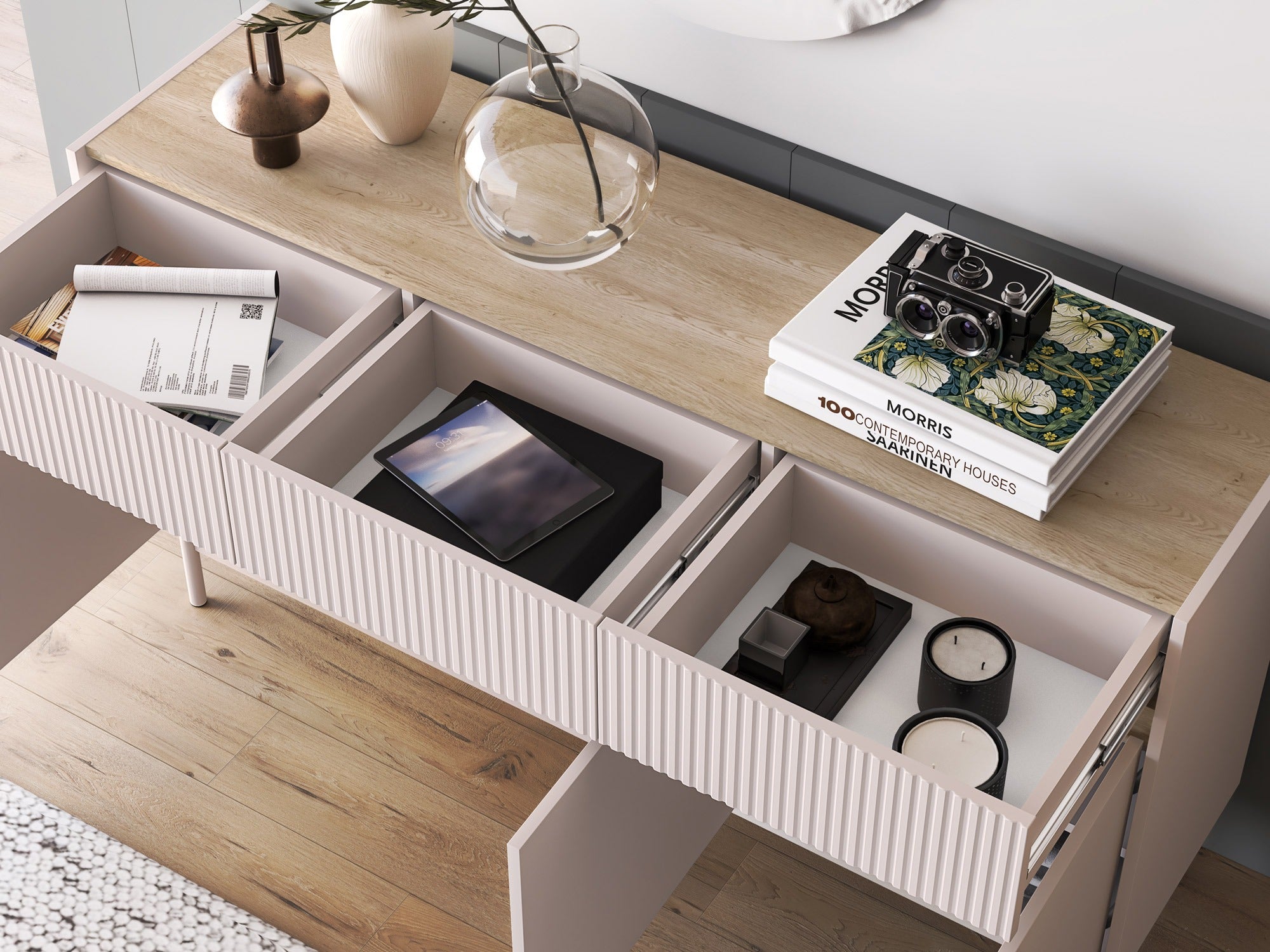- Tipo de cómoda: Con cajones y puertas