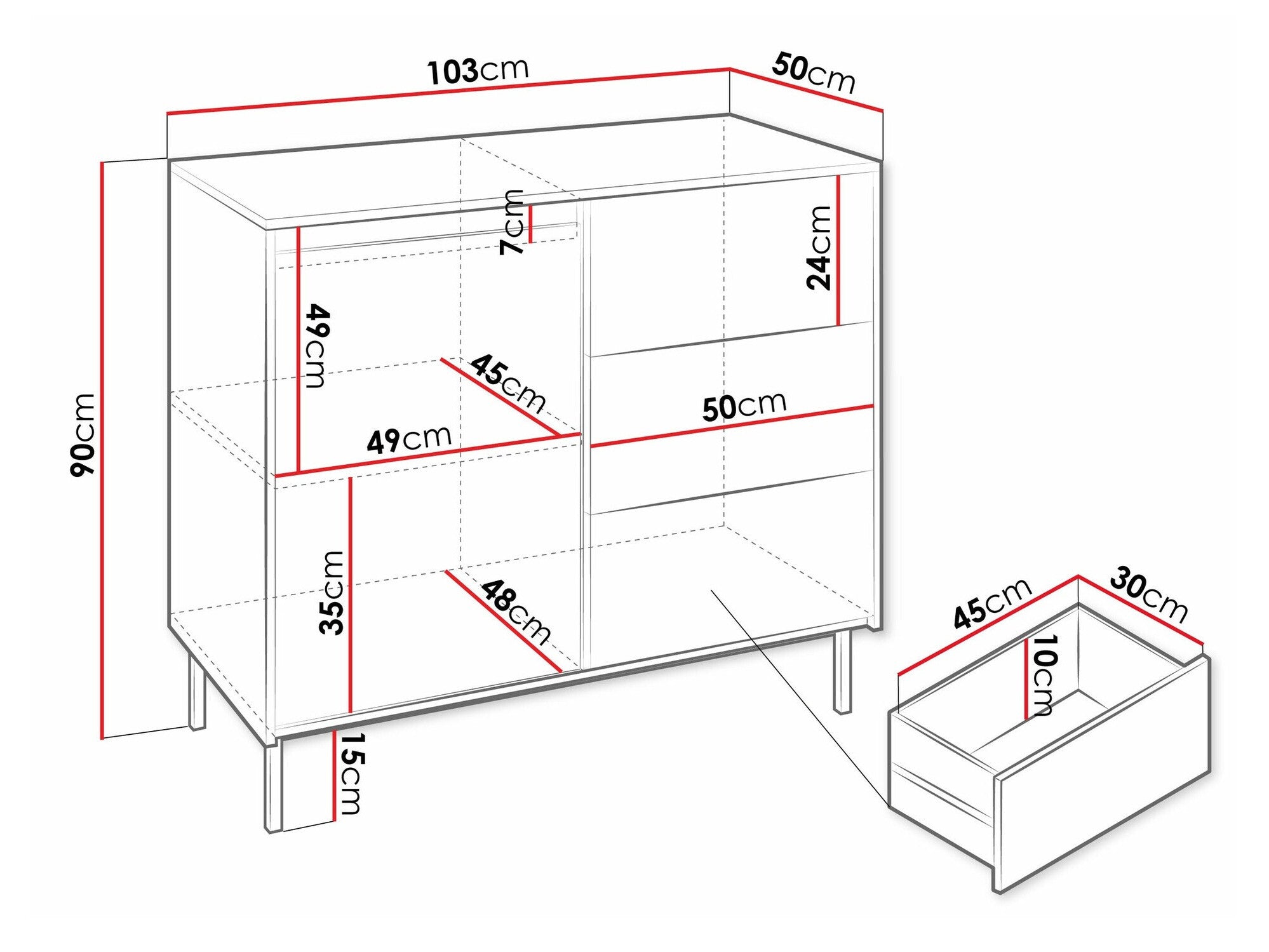 - Tipo de cómoda: Con cajones y puertas