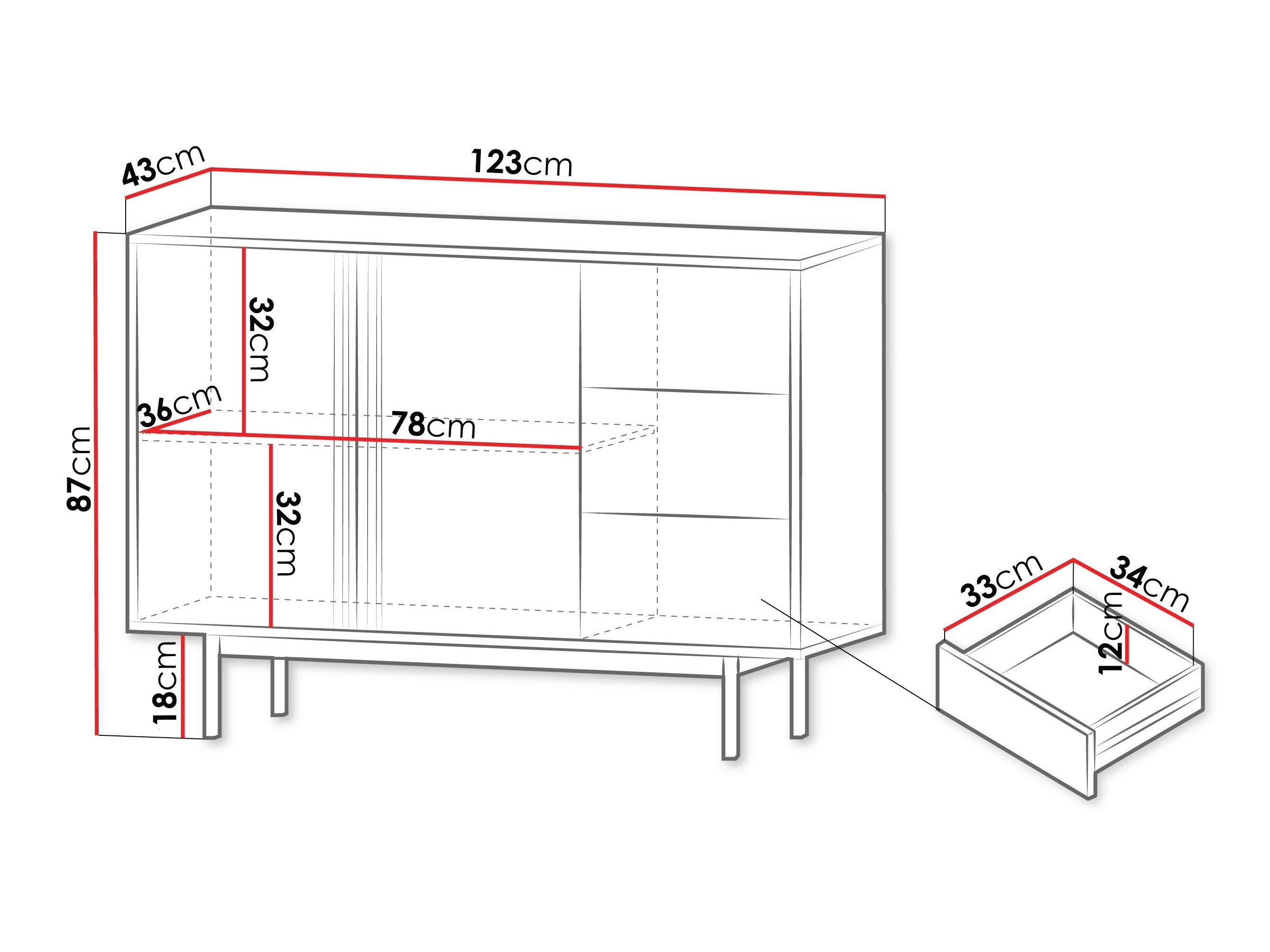 - Tipo de cómoda: Con cajones y puertas