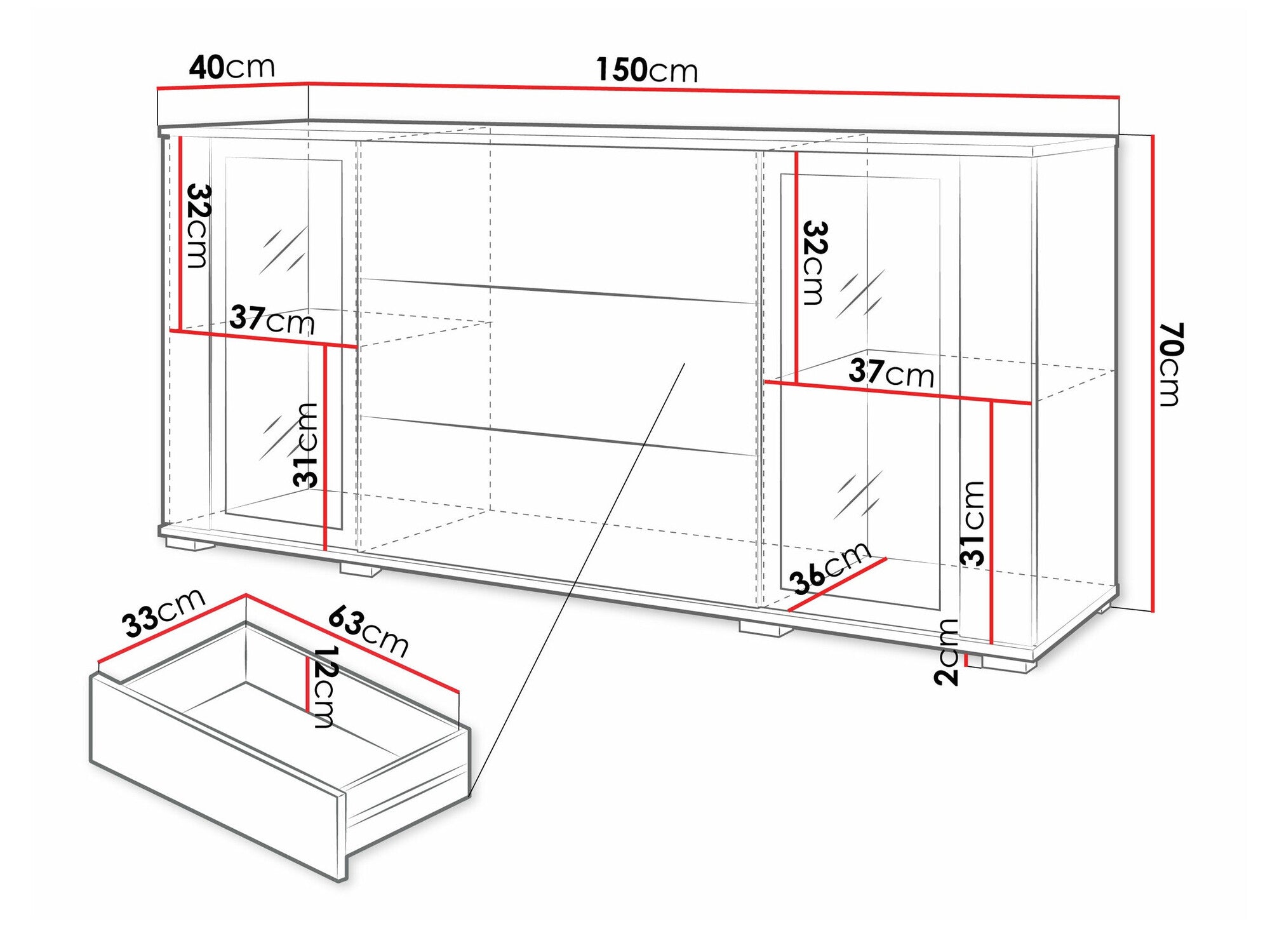 - Tipo de cómoda: Con cajones y puertas