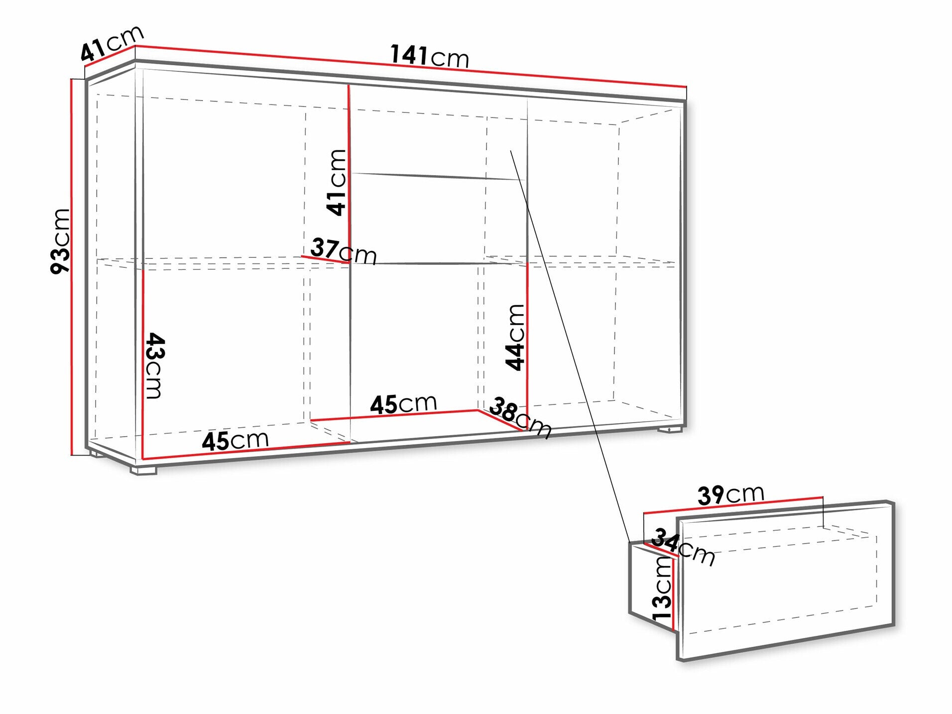 - Tipo de cómoda: Con cajones y puertas