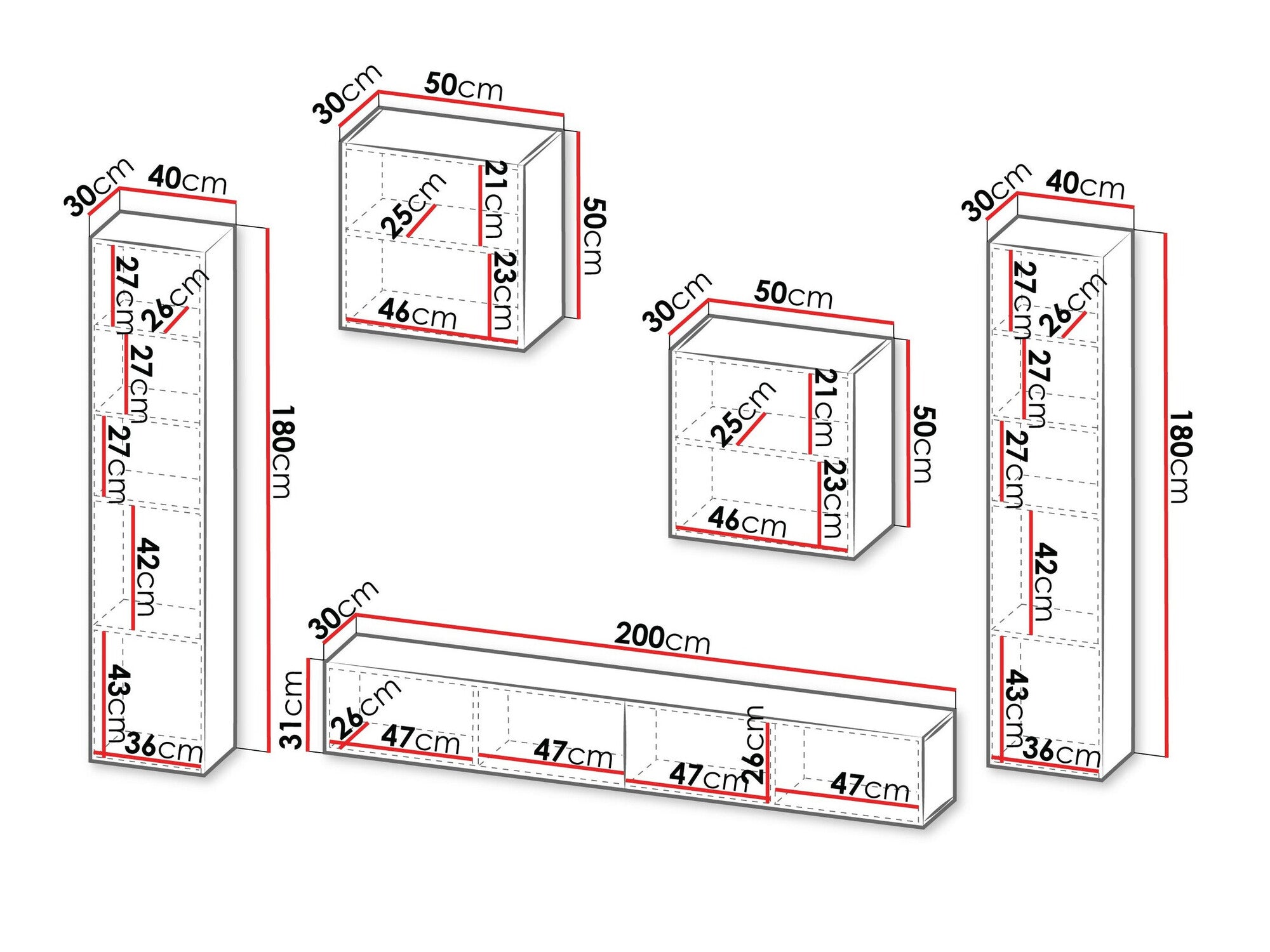 - Dimensiones del armario colgante: 50 x 50 x 30 cm