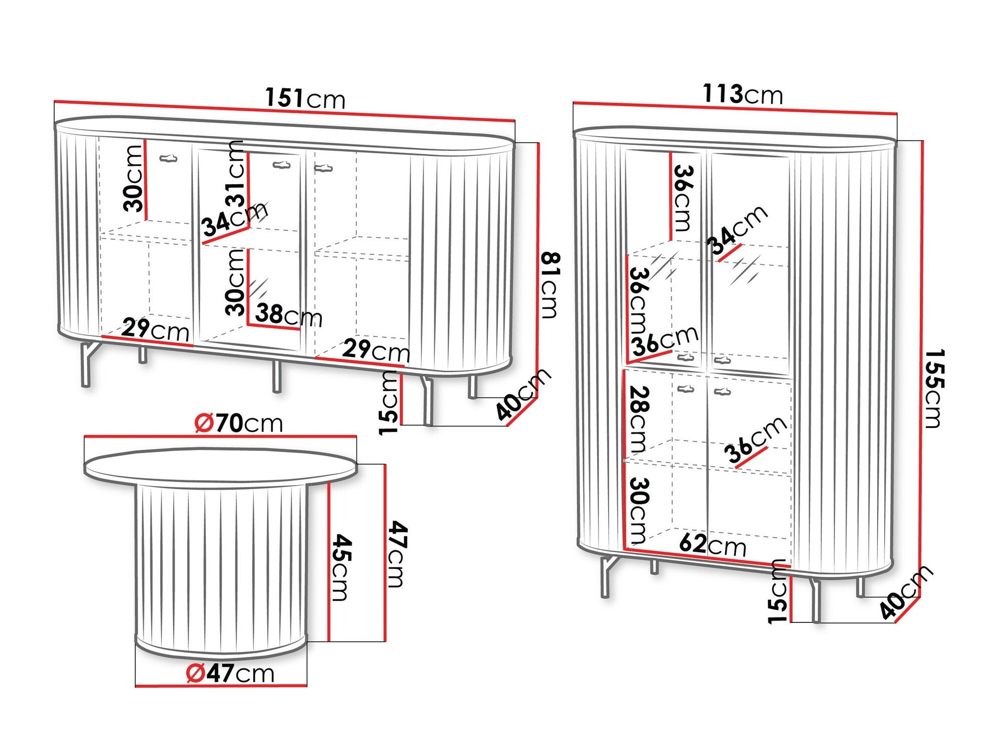- Dimensiones del armario: 81 x 151 x 40 cm