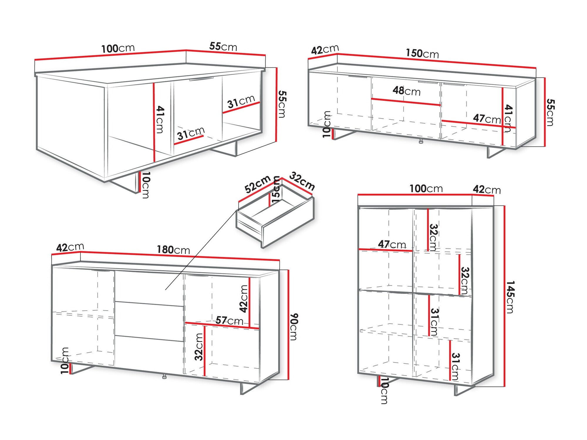 • Dimensiones de la cómoda: 90 x 180 x 42 cm