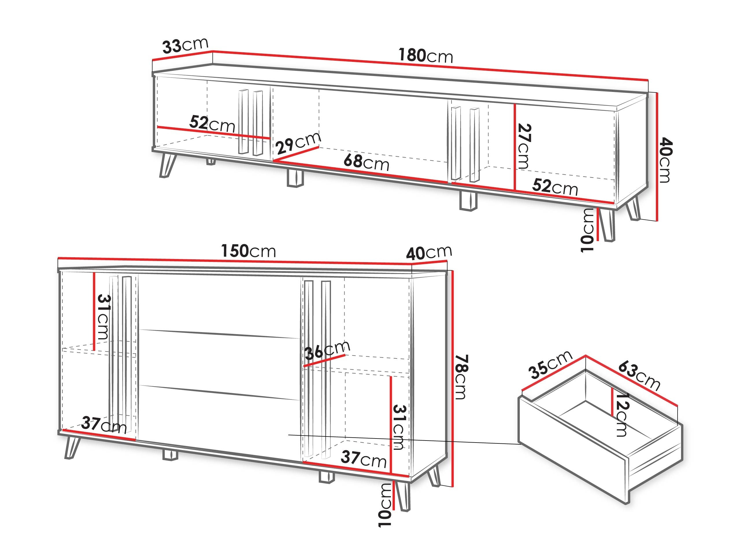 - TV dimensiones de la mesa: 40 x 180 x 33 cm