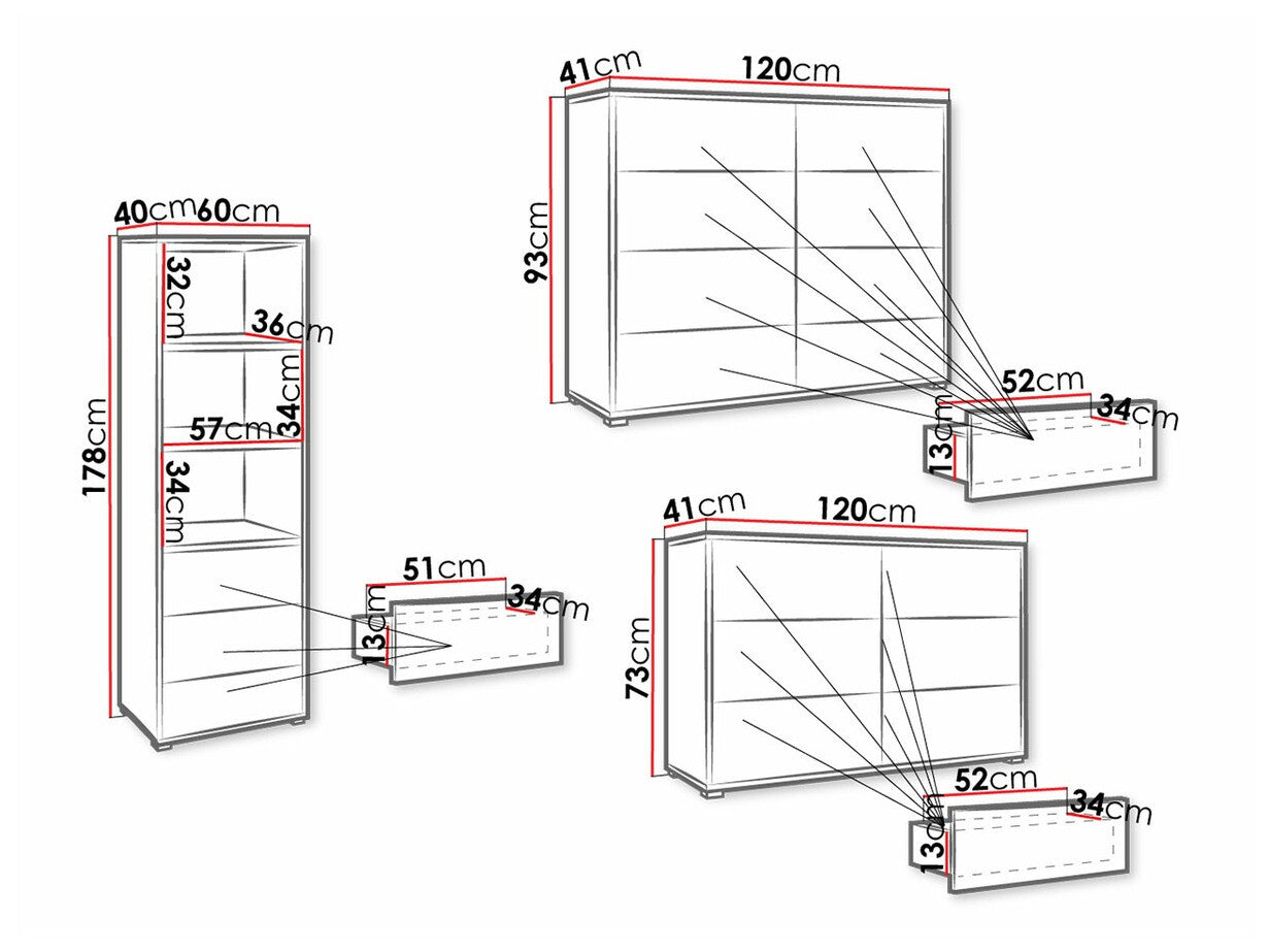 • Dimensiones de la cómoda: 73 x 120 x 41 x 120 x 41 cm