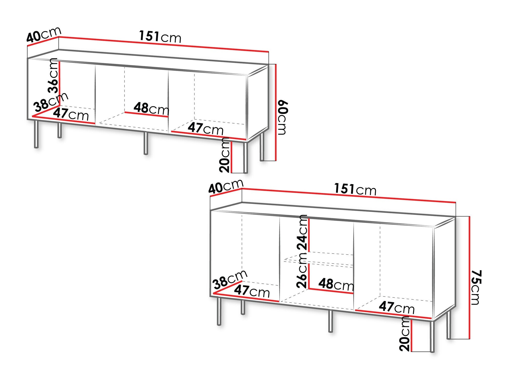 - Dimensiones del armario: 75 x 151 x 40 cm