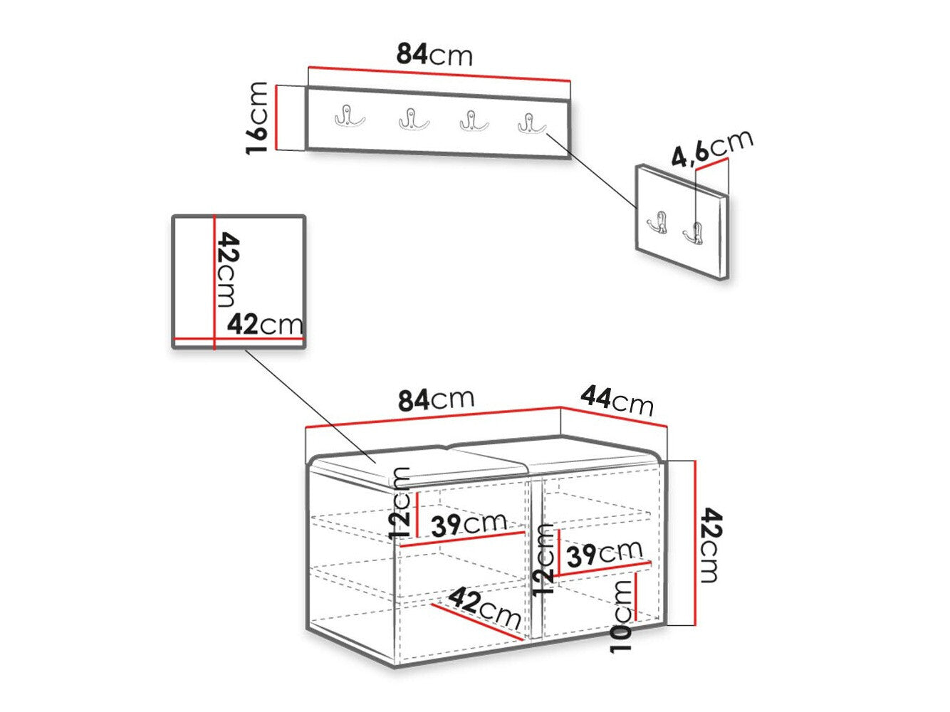 - Dimensiones de la caja de zapatos: 42 x 84 x 44 cm
