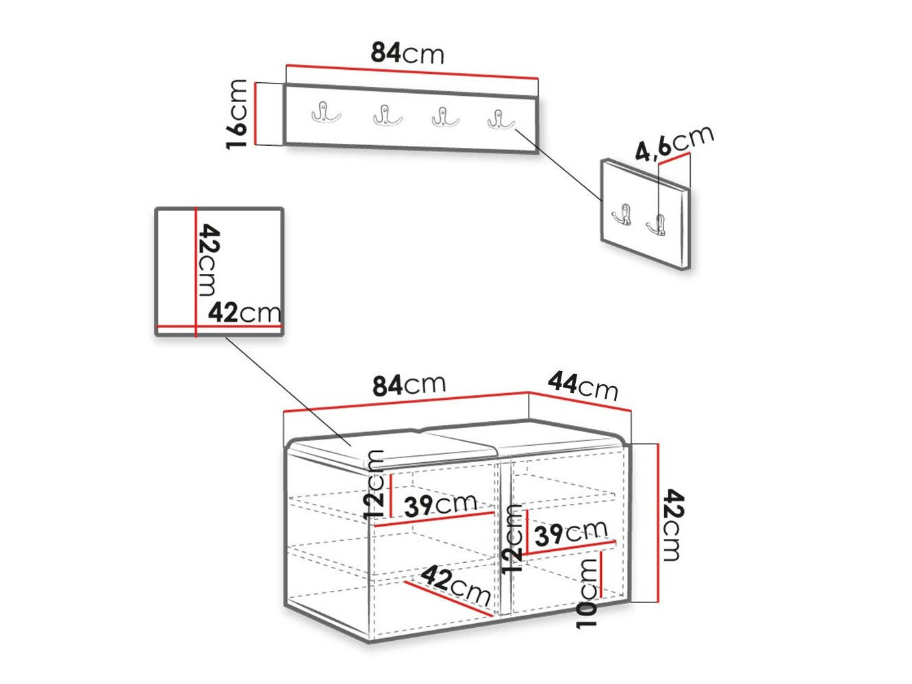 - Dimensiones de la caja de zapatos: 42 x 84 x 44 cm