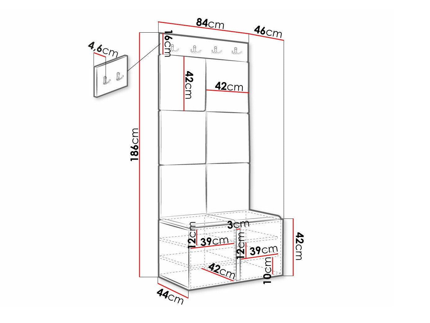 - Dimensiones de la percha: 16 x 84 x 4.6 cm