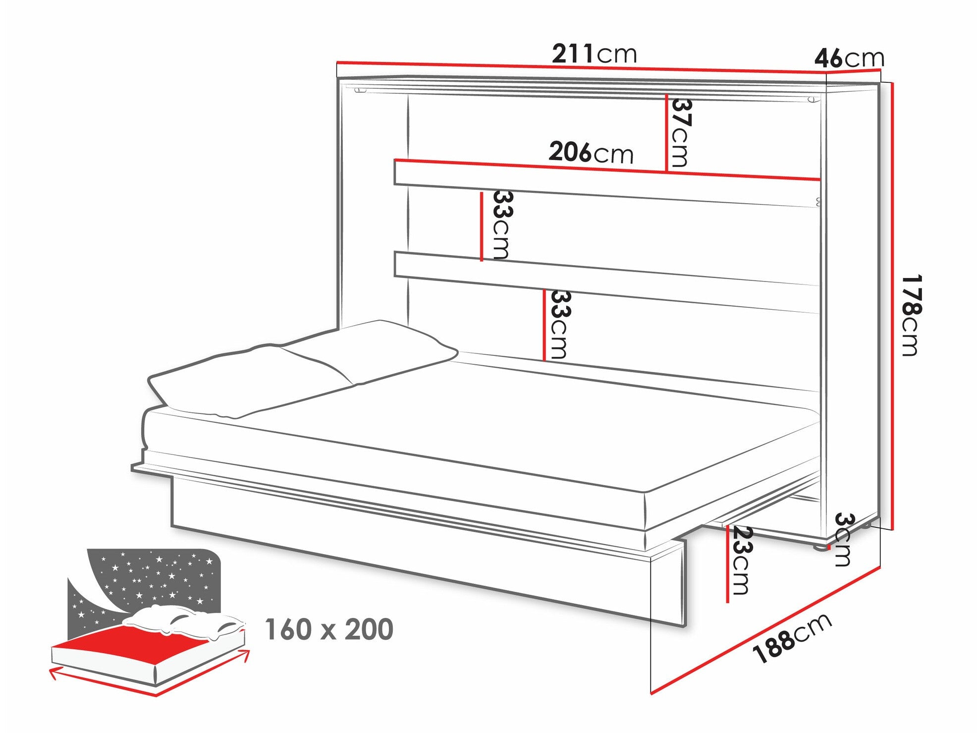 - Dimensiones de la cama: 178 x 188 x 211 cm