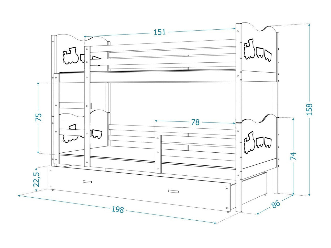- Tamaño del colchón: 80 x 190 cm