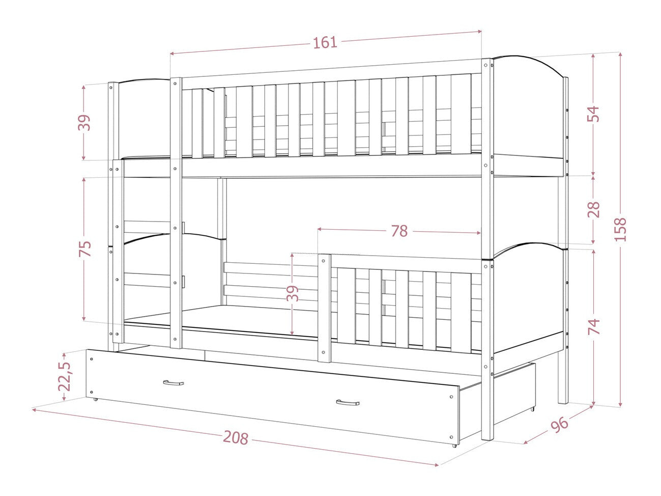 - Tipo de cama: De dos pisos