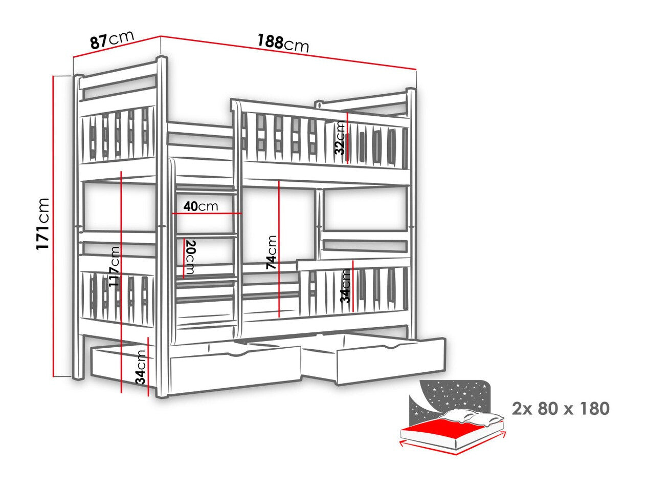 - Tamaño del colchón: 80 x 180 cm