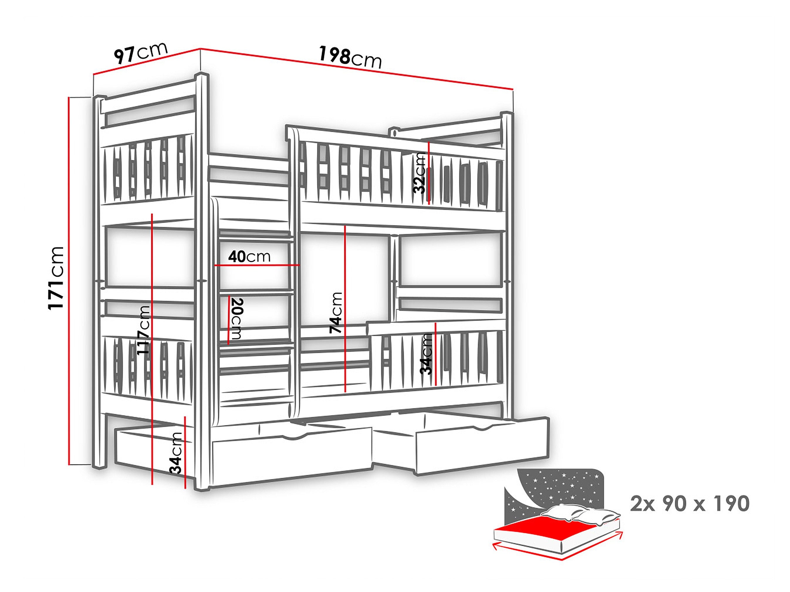- Tamaño del colchón: 90 x 190 cm