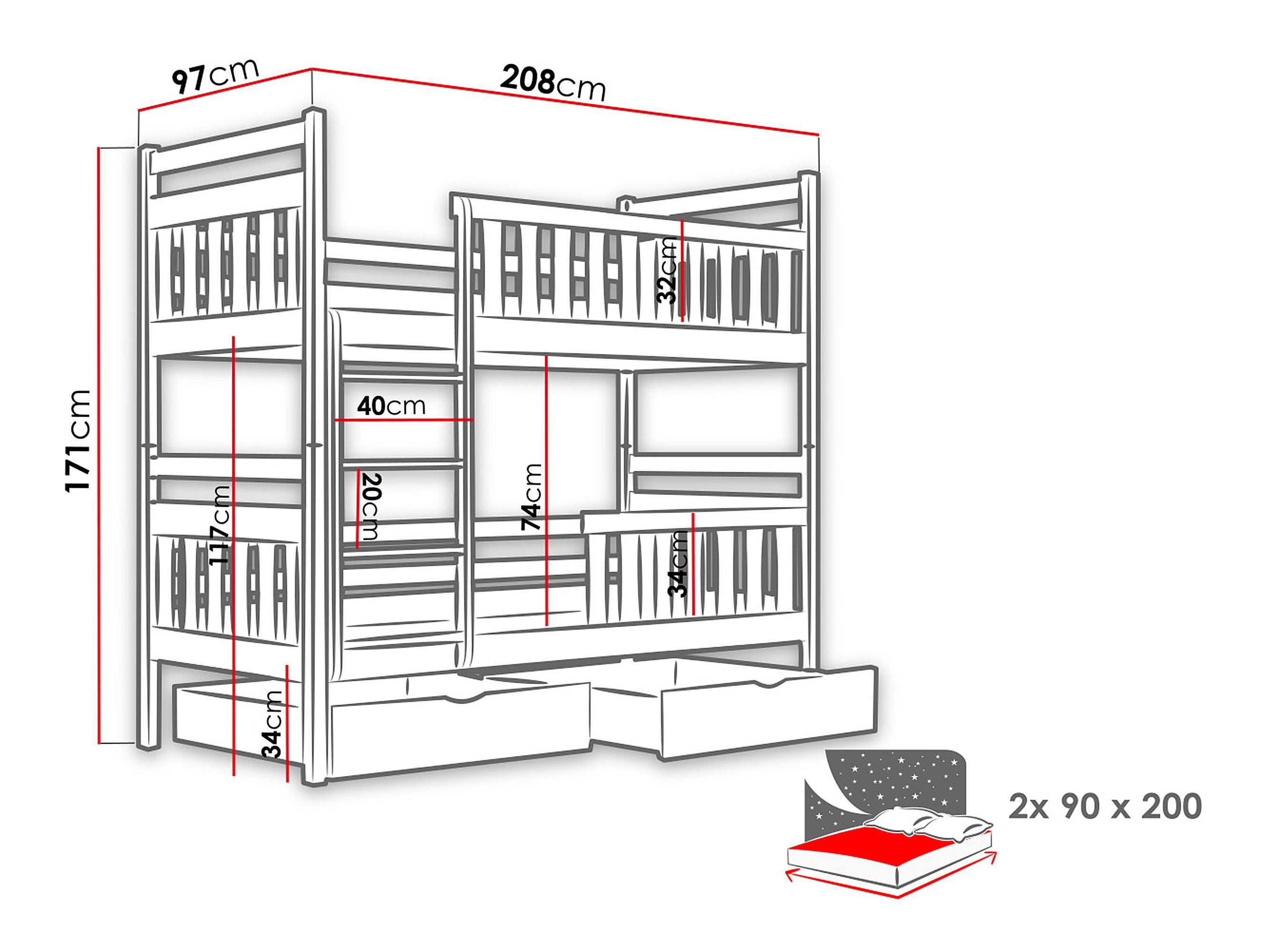 - Tamaño del colchón: 90 x 200 cm