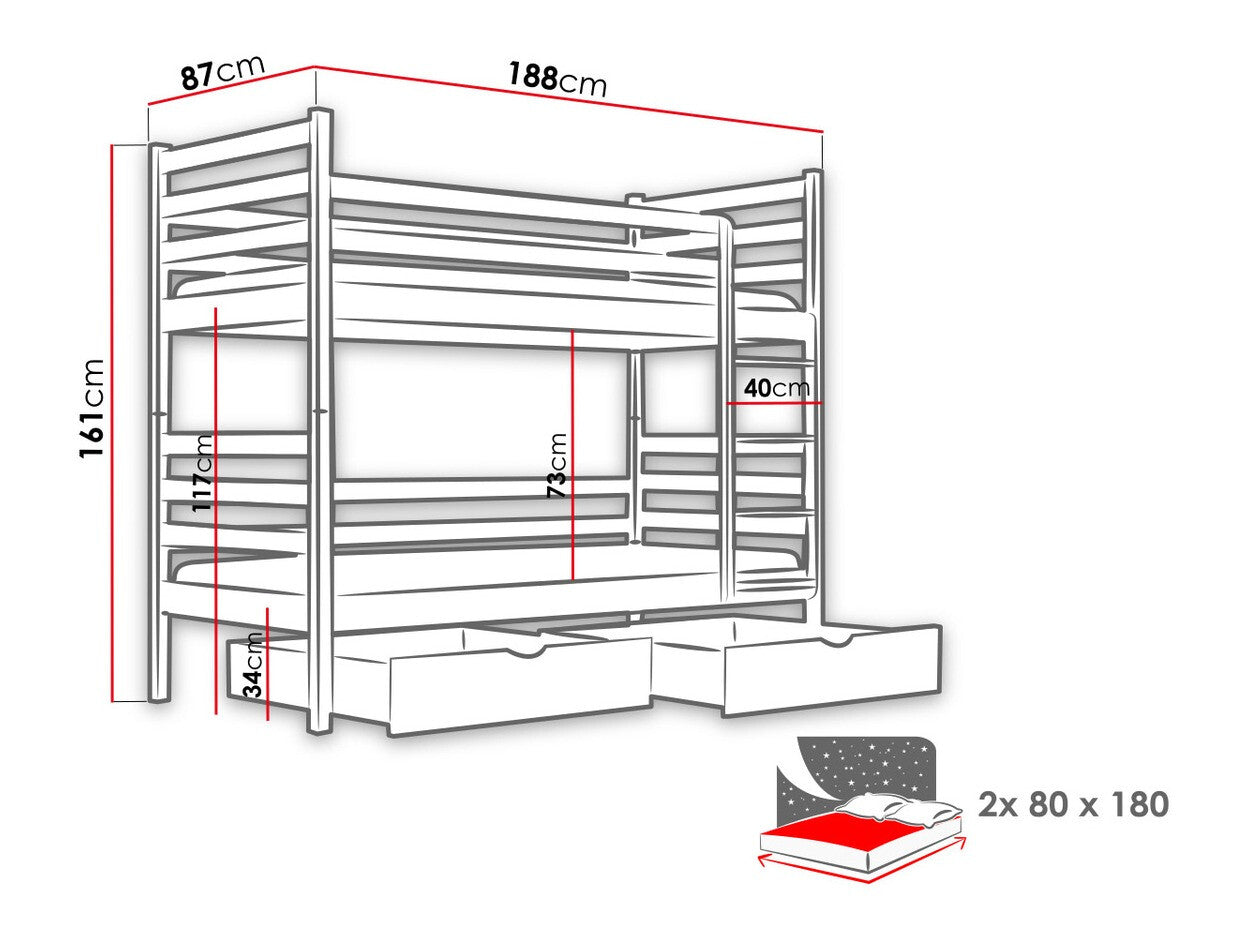 - Tipo de cama: De dos pisos