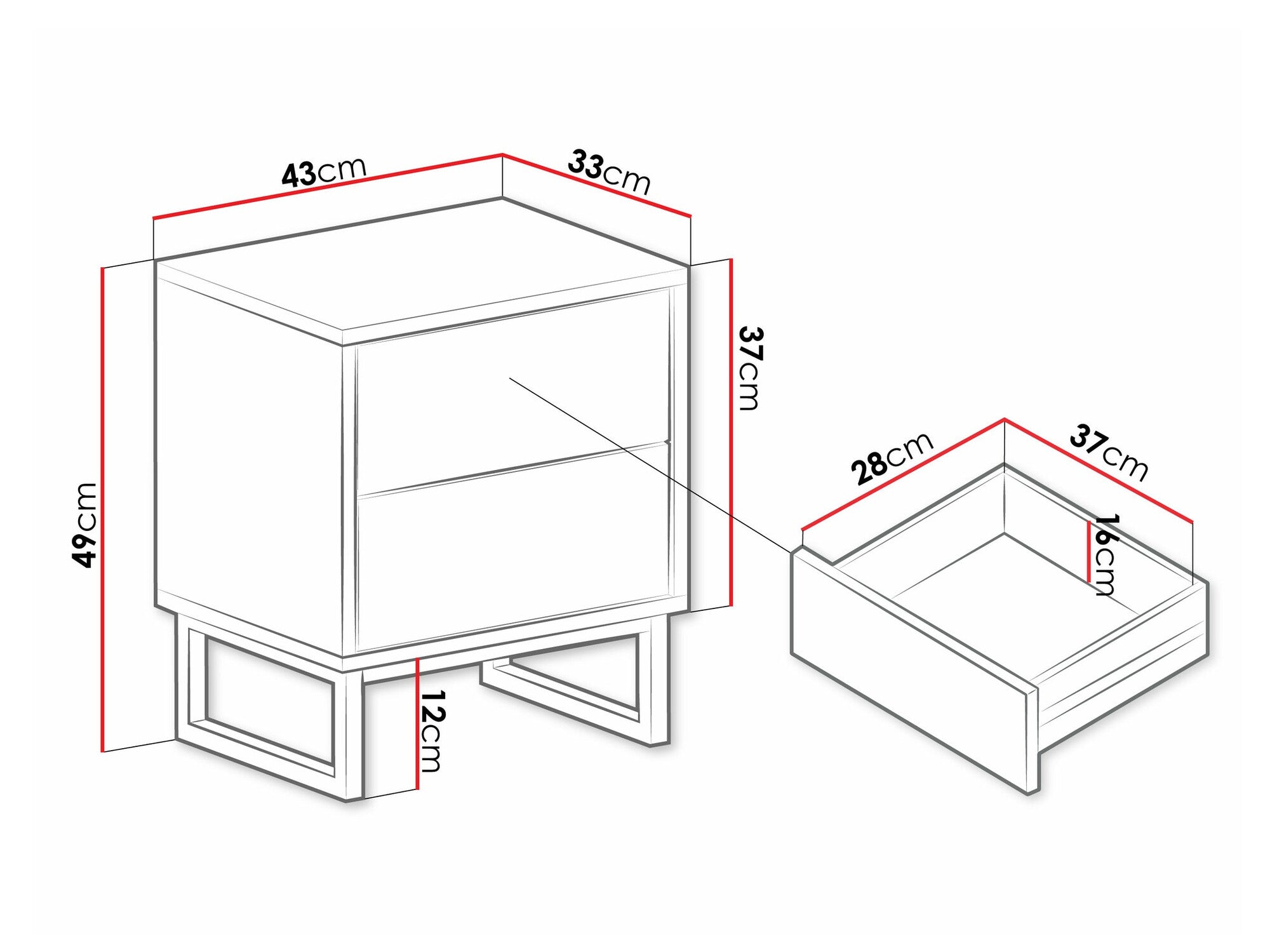 • Altura de las patas: 12 cm