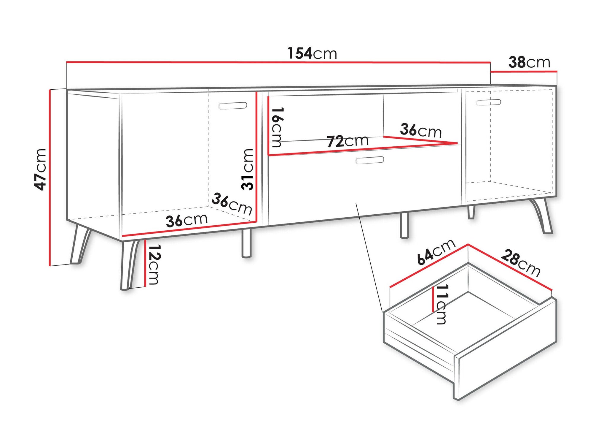 - Altura de las patas: 12 cm