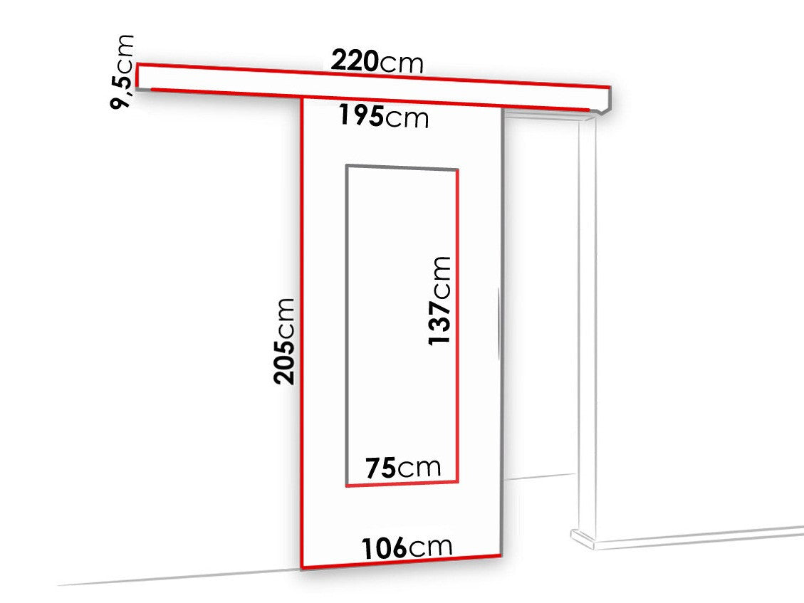 - Dimensiones del sistema de puertas correderas: 195 cm