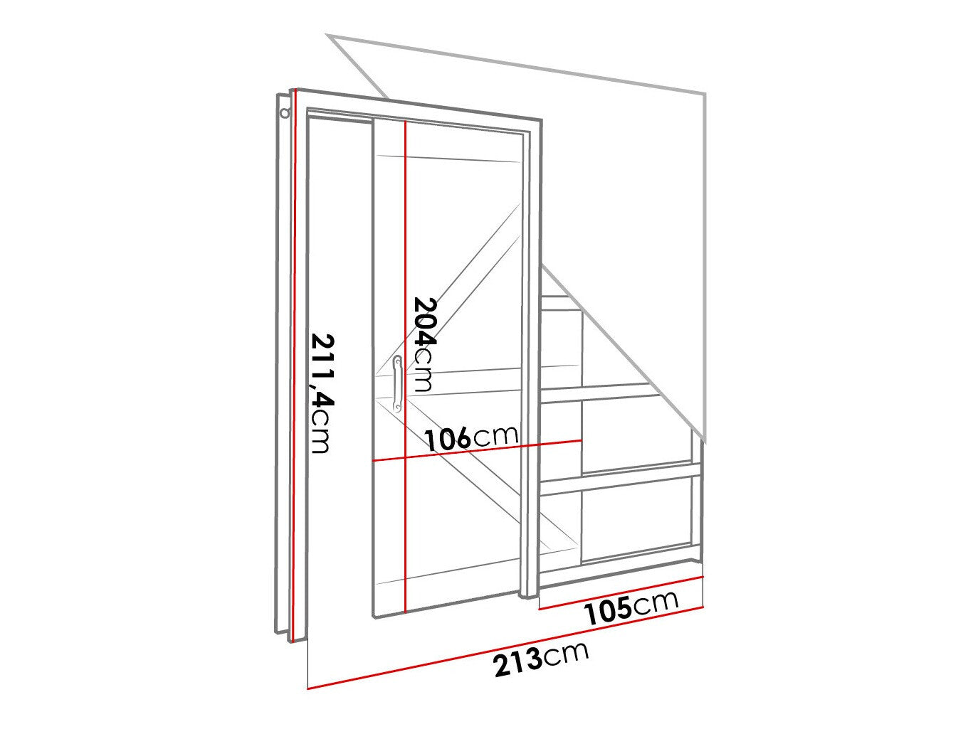 - Dimensiones del sistema de puertas correderas: 211.4 x 213 cm
