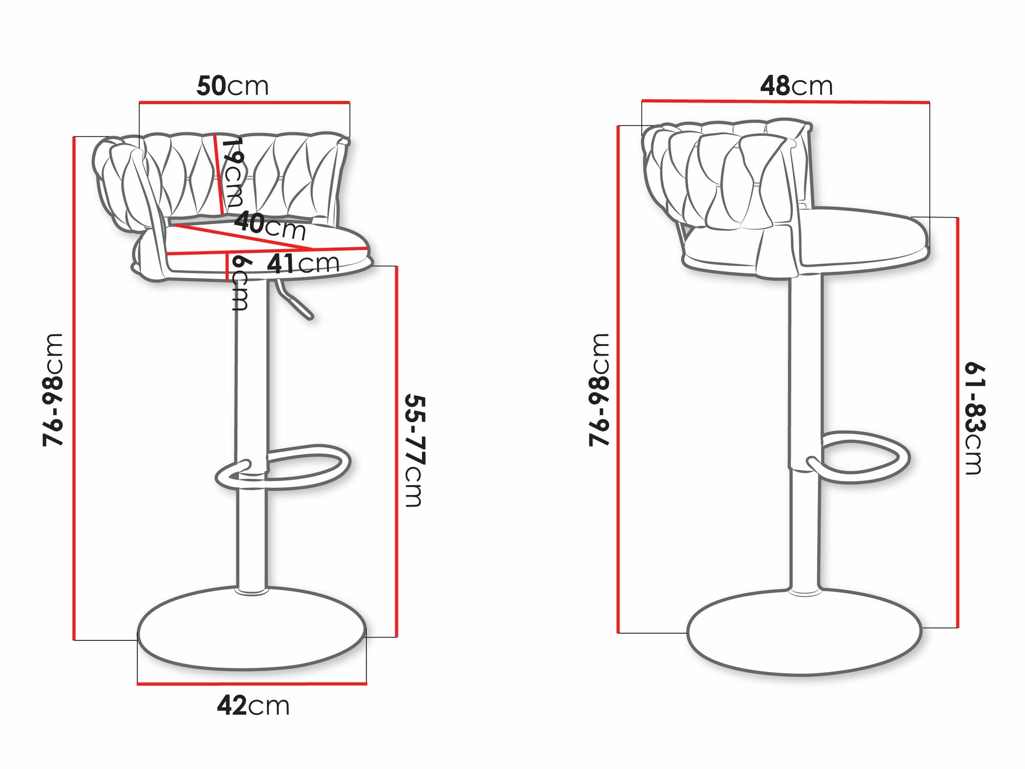 - Tipo de silla de barra: Altura ajustable