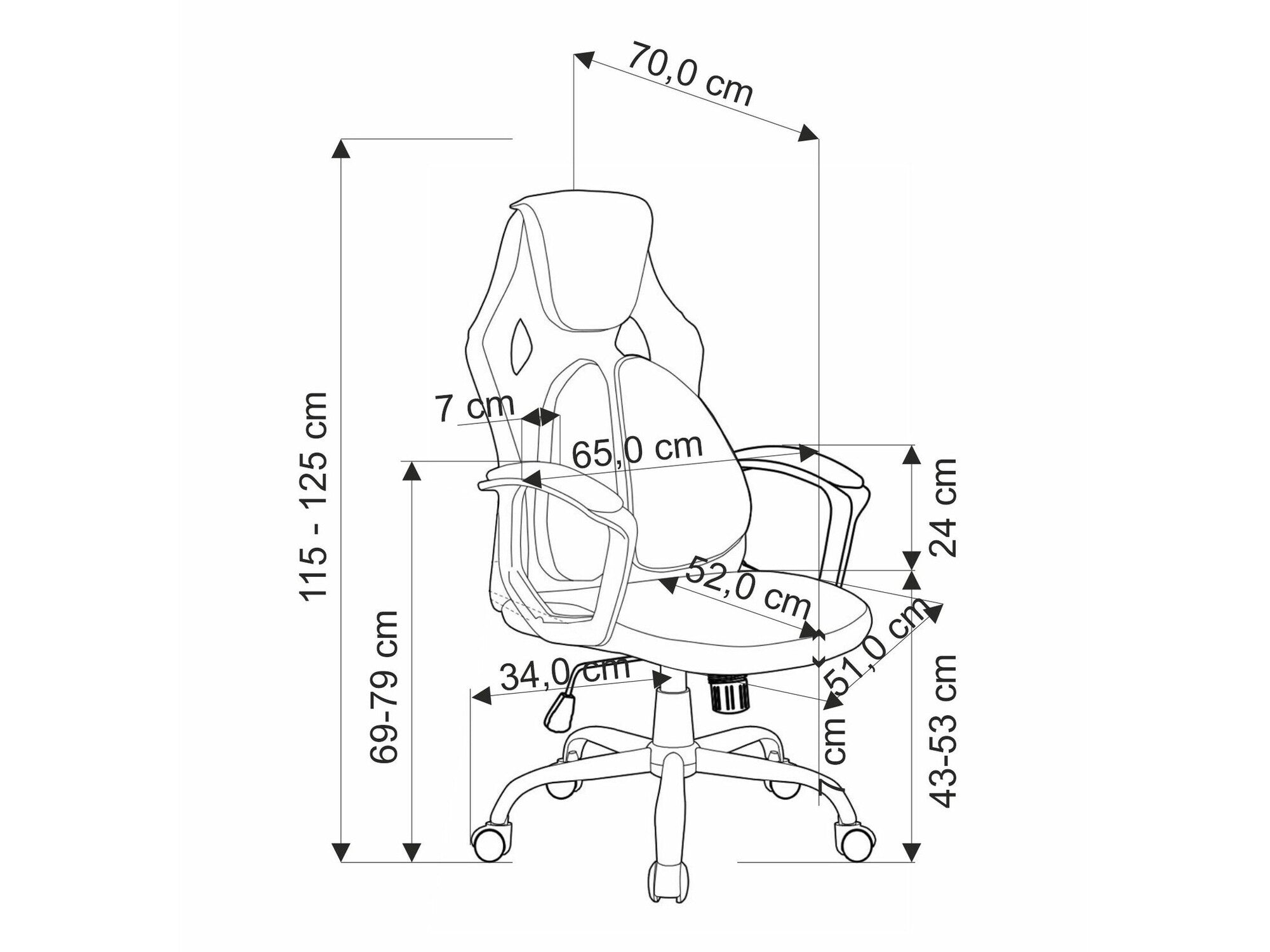 - Ancho del apoyabrazos: 7 cm