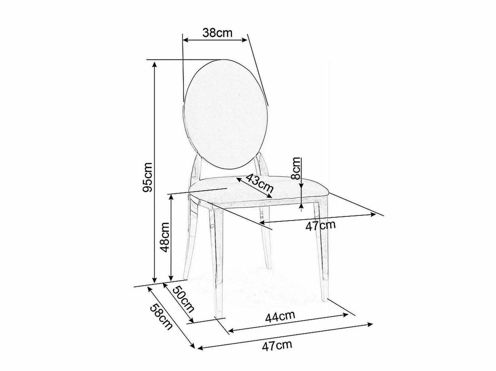 - Ancho del respaldo: 38 cm