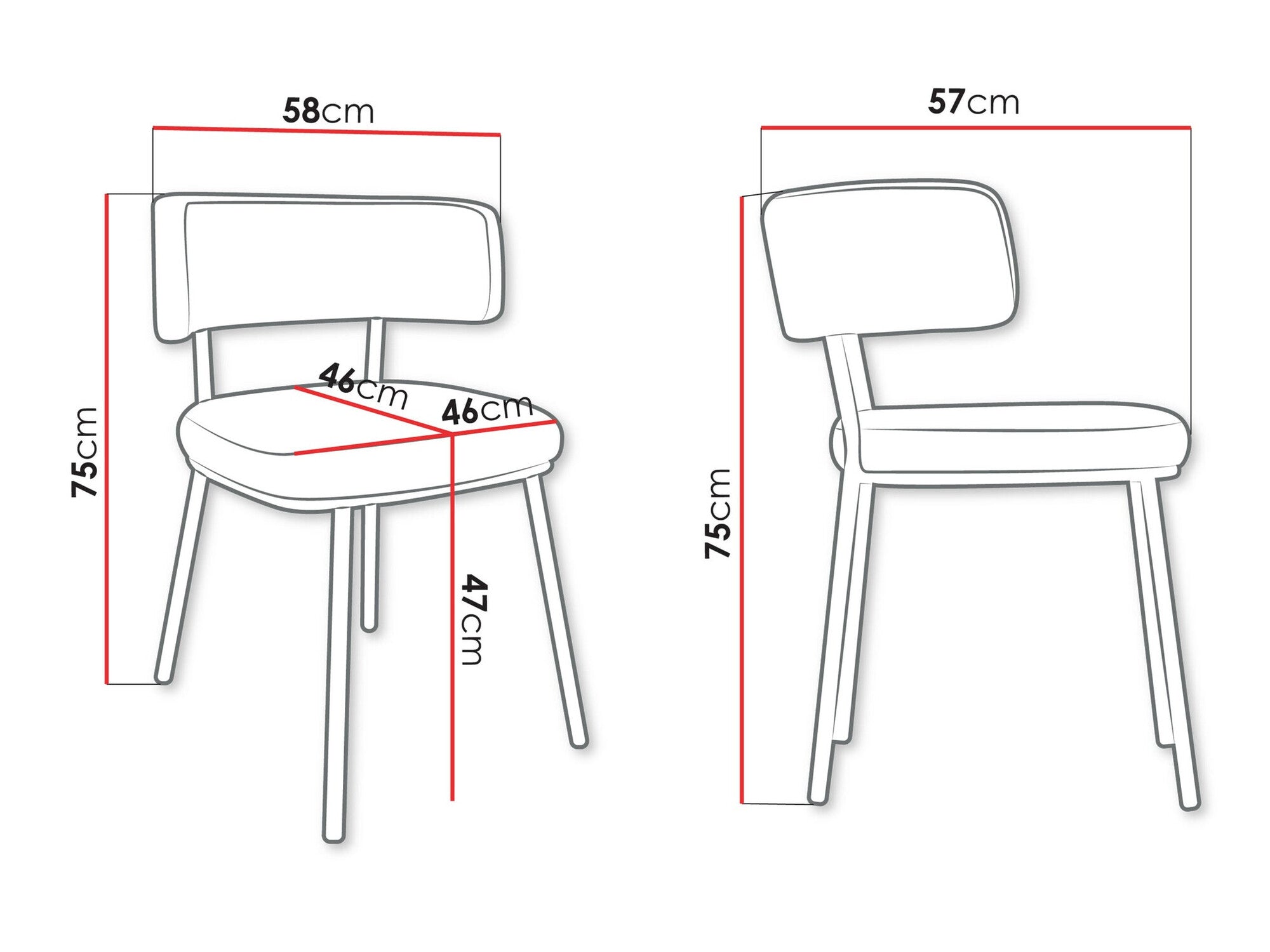 - Ancho del respaldo: 58 cm
