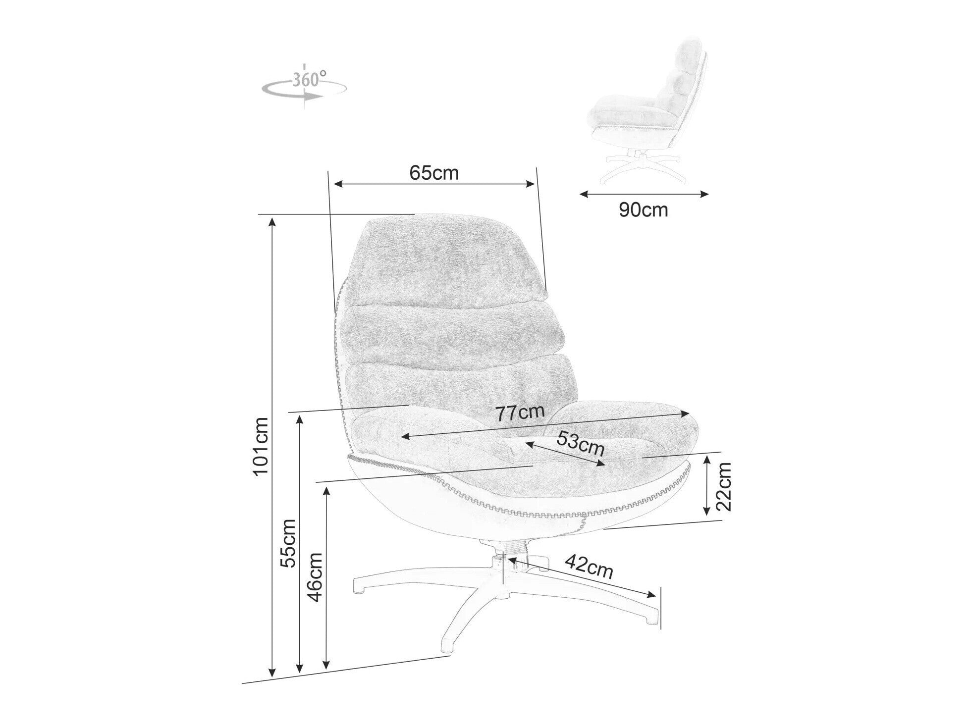 - Altura del reposabrazos: 55 cm