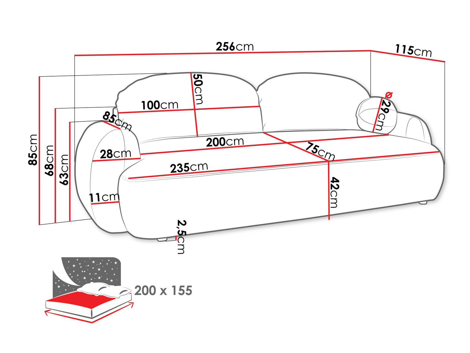 Este mecanismo del mueble es único en el sentido de que la parte que se mueve, se mueve sin tocar el suelo, por lo que el suelo queda protegido de posibles arañazos. Simplemente levante el asiento y tire de él ligeramente hacia usted. Luego baje la parte trasera de los muebles para preparar un lugar para dormir.