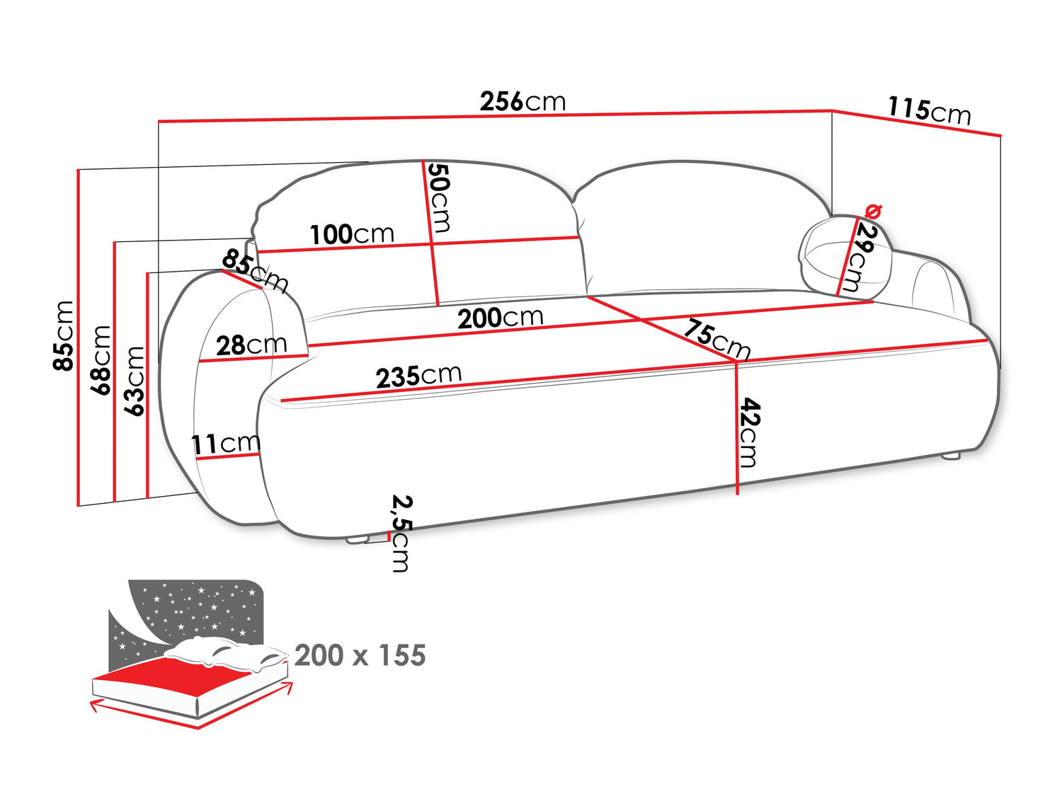 Este mecanismo del mueble es único en el sentido de que la parte que se mueve, se mueve sin tocar el suelo, por lo que el suelo queda protegido de posibles arañazos. Simplemente levante el asiento y tire de él ligeramente hacia usted. Luego baje la parte trasera de los muebles para preparar un lugar para dormir.