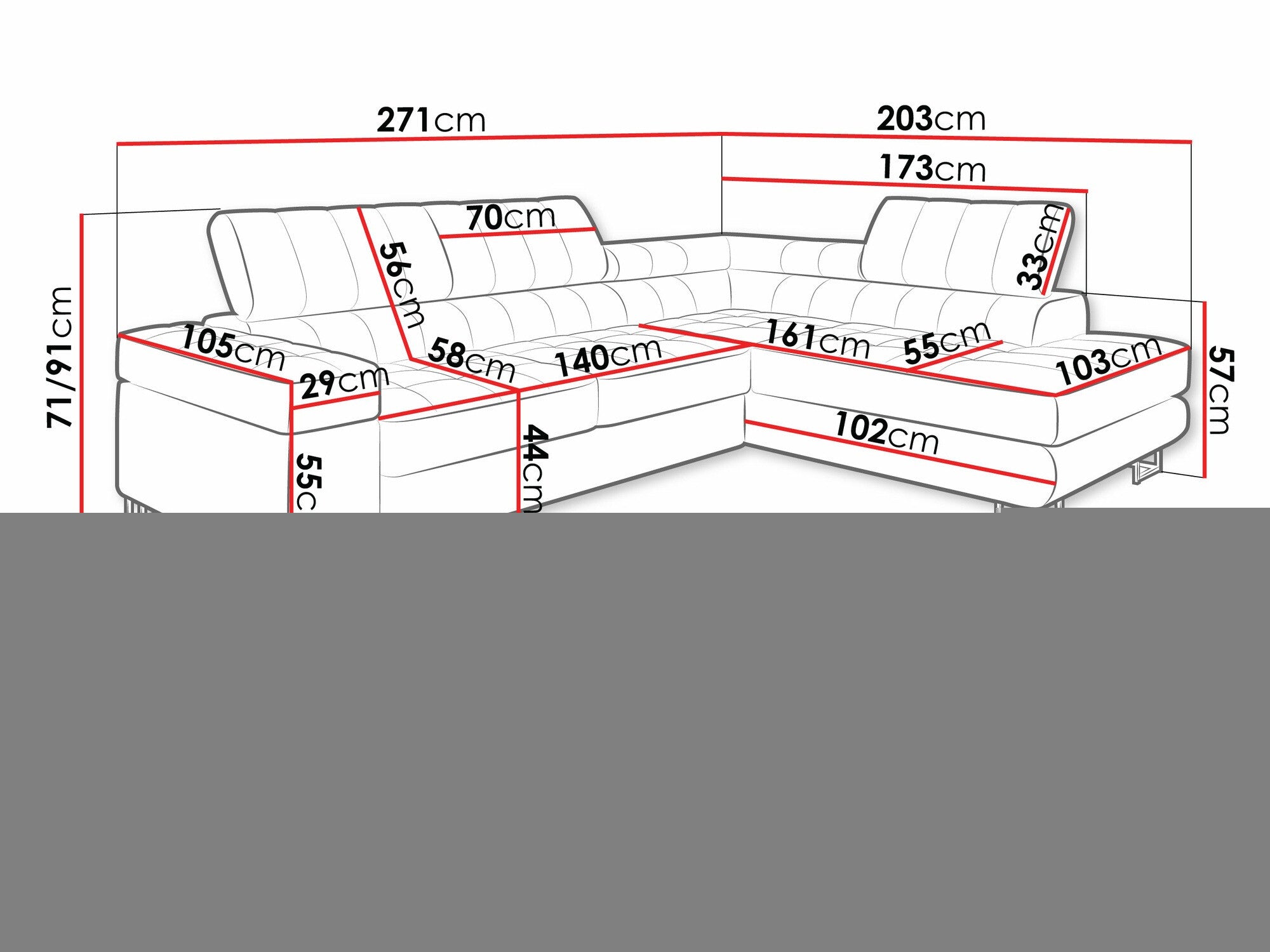 - Ancho: 271 cm