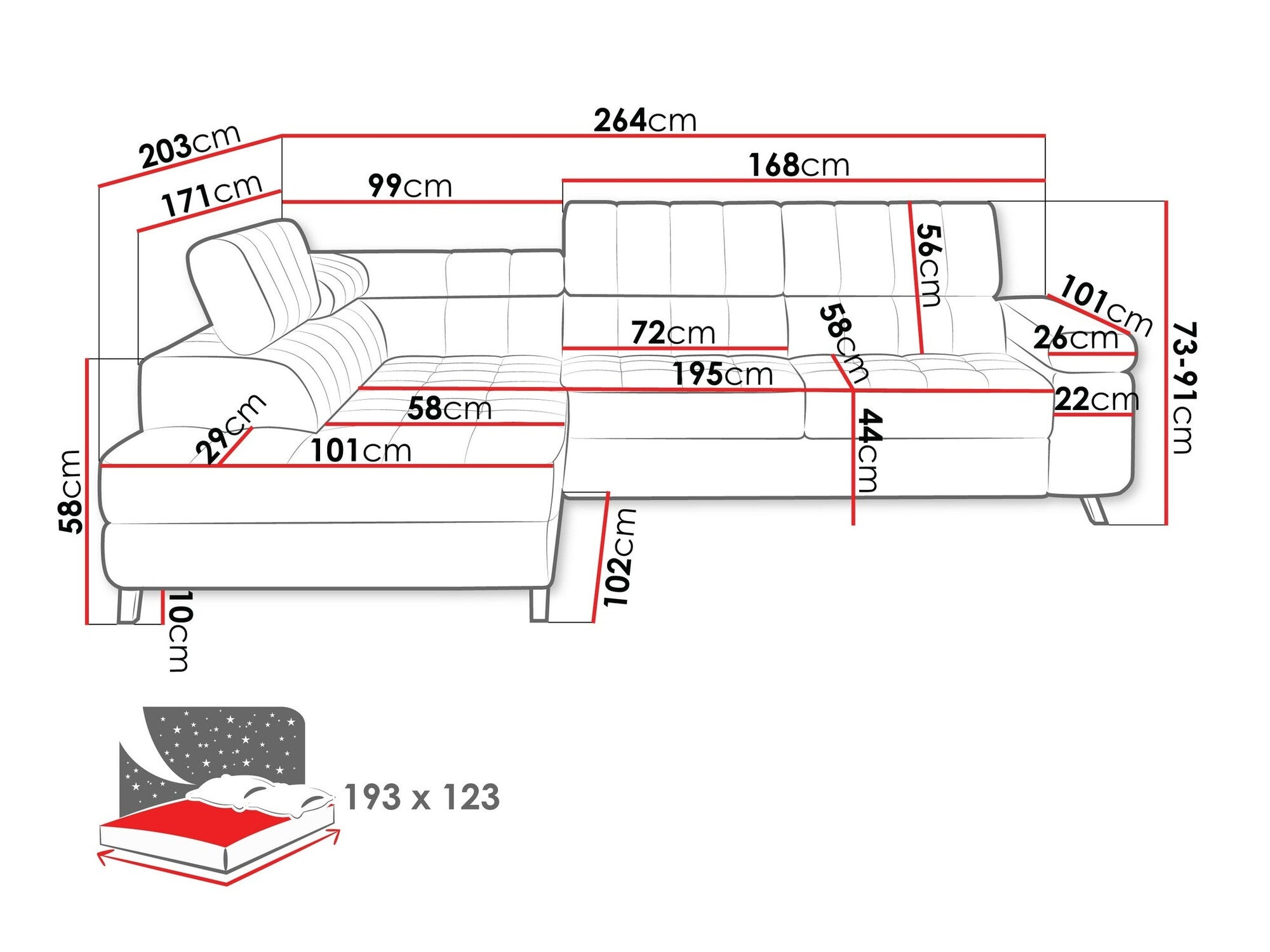 - Longitud del área de descanso: 193 cm