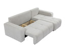 El sofá esquinero para salón dispone de un compartimento de almacenamiento integrado, ideal para guardar edredones, almohadas y otros textiles, ahorrando espacio en el armario. El amplio chaise longue ofrece un lugar cómodo para relajarse por la tarde con un café y tu serie favorita. La variedad de colores disponibles permite combinar la tapicería a la perfección con la decoración del salón.