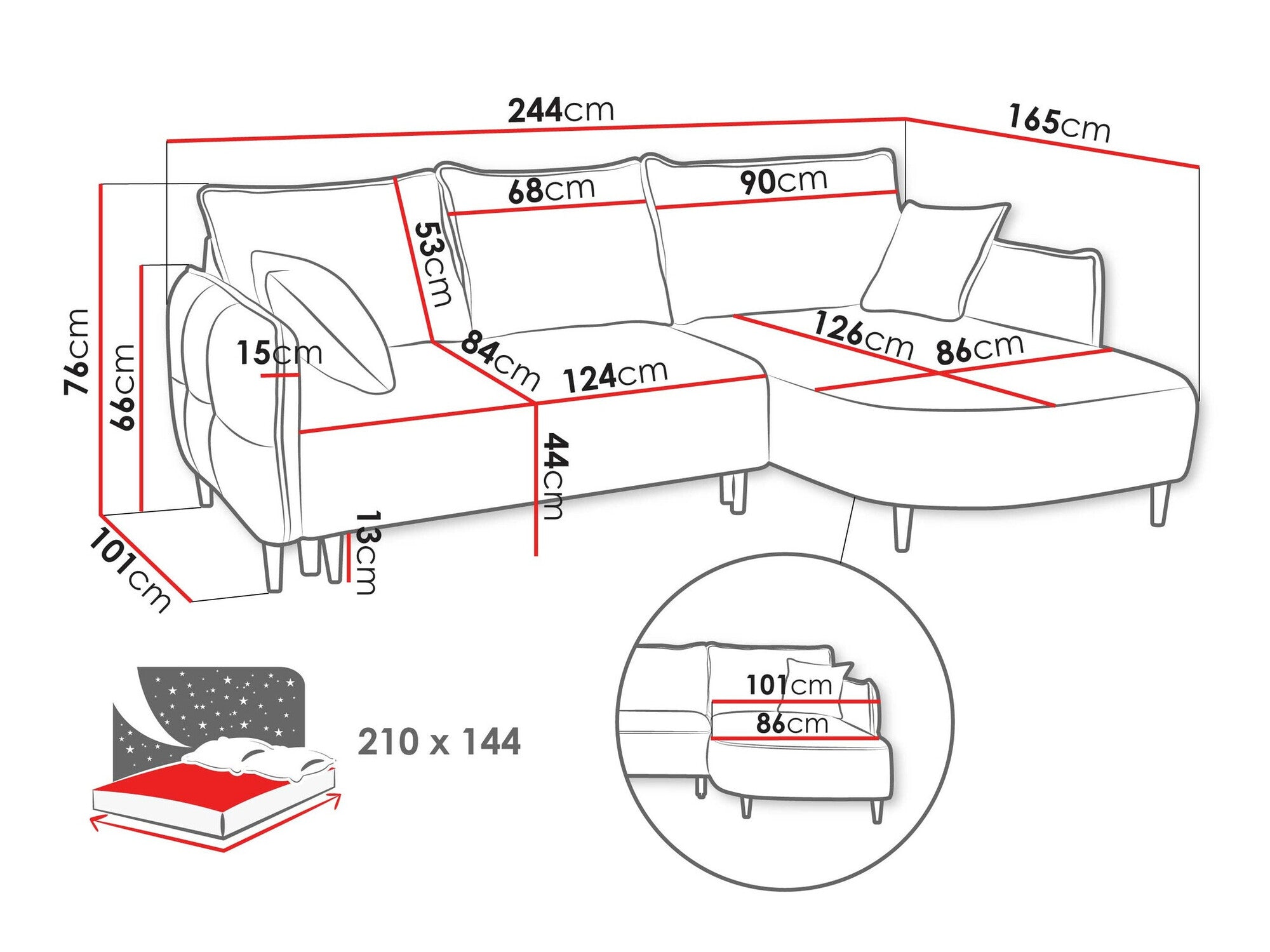 • Longitud del área de descanso: 210 cm