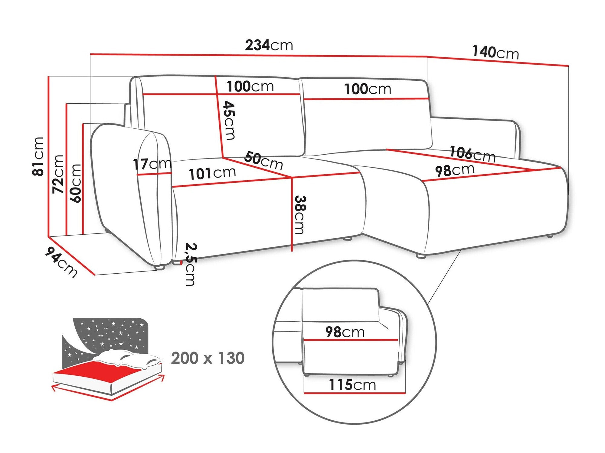 - Profundidad del reposabrazos: 94 cm