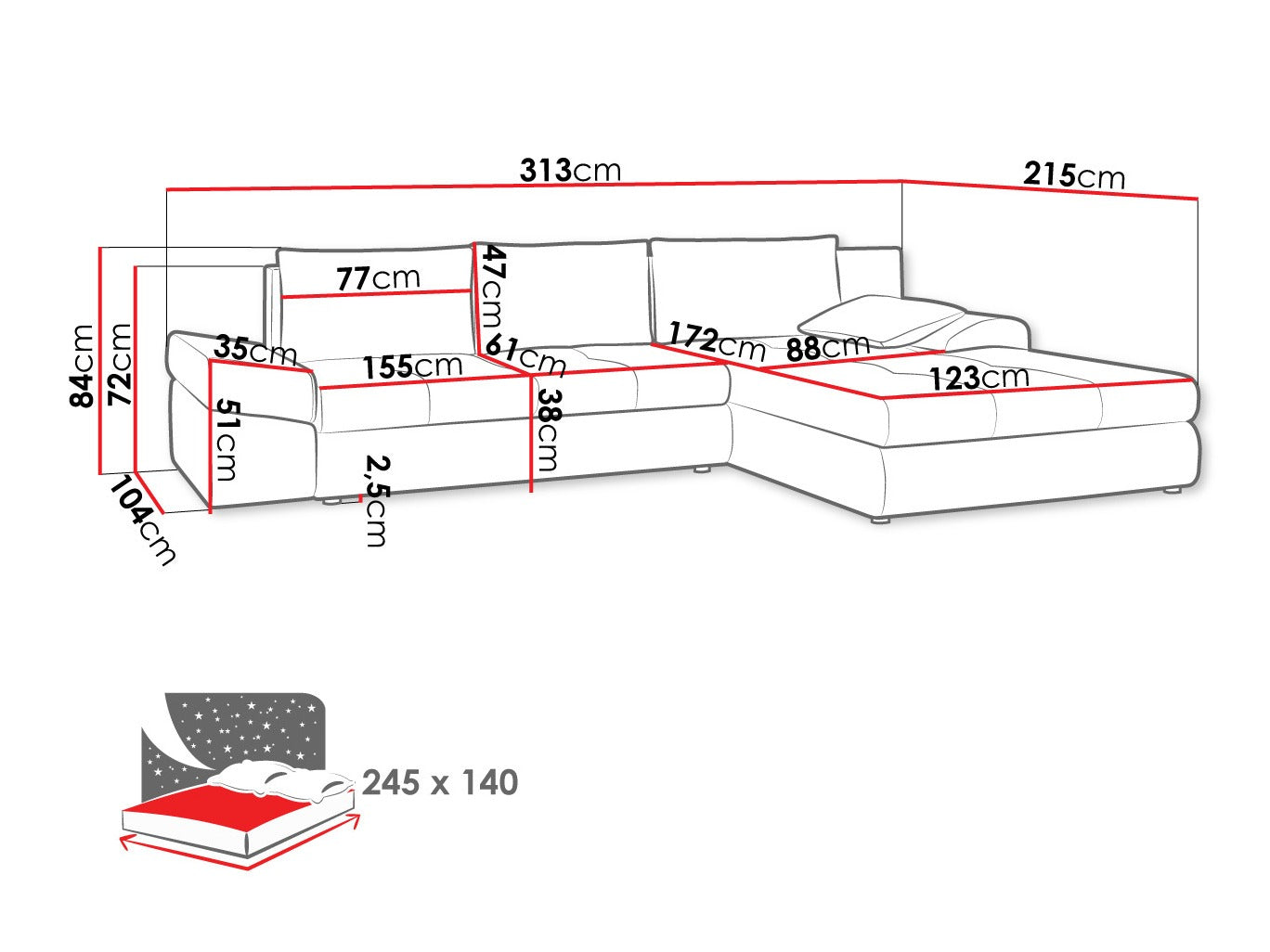 - Ancho: 313 cm